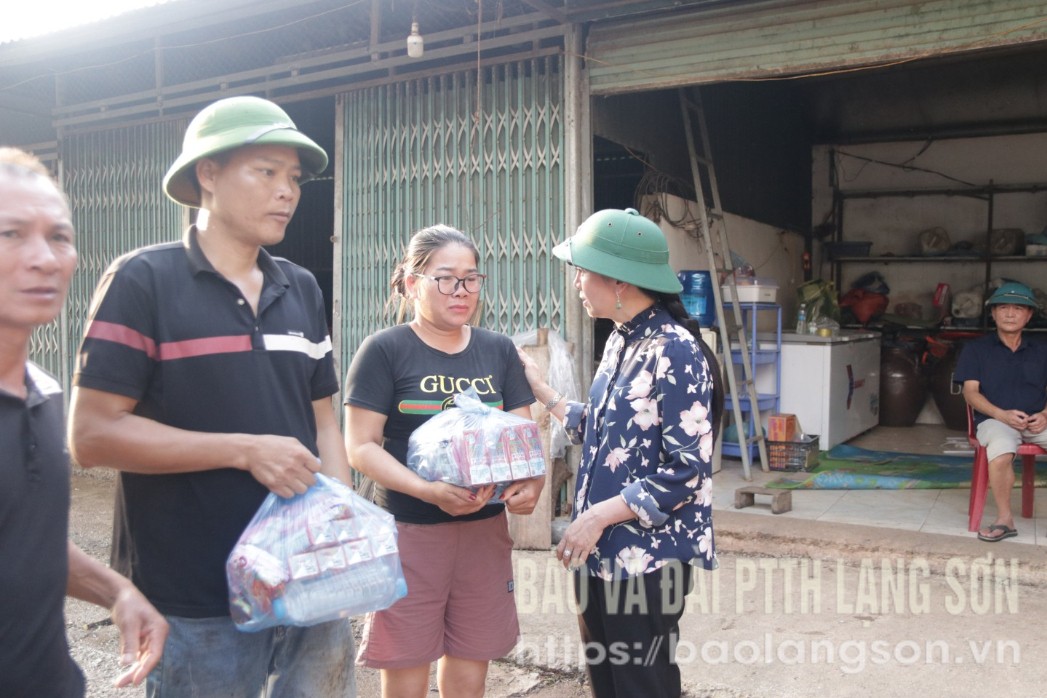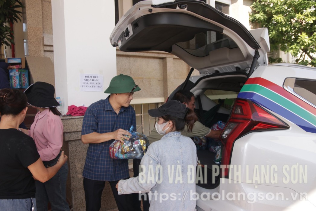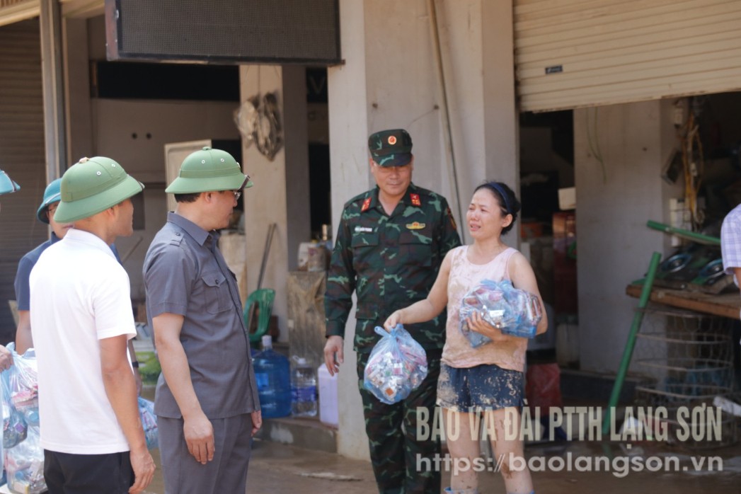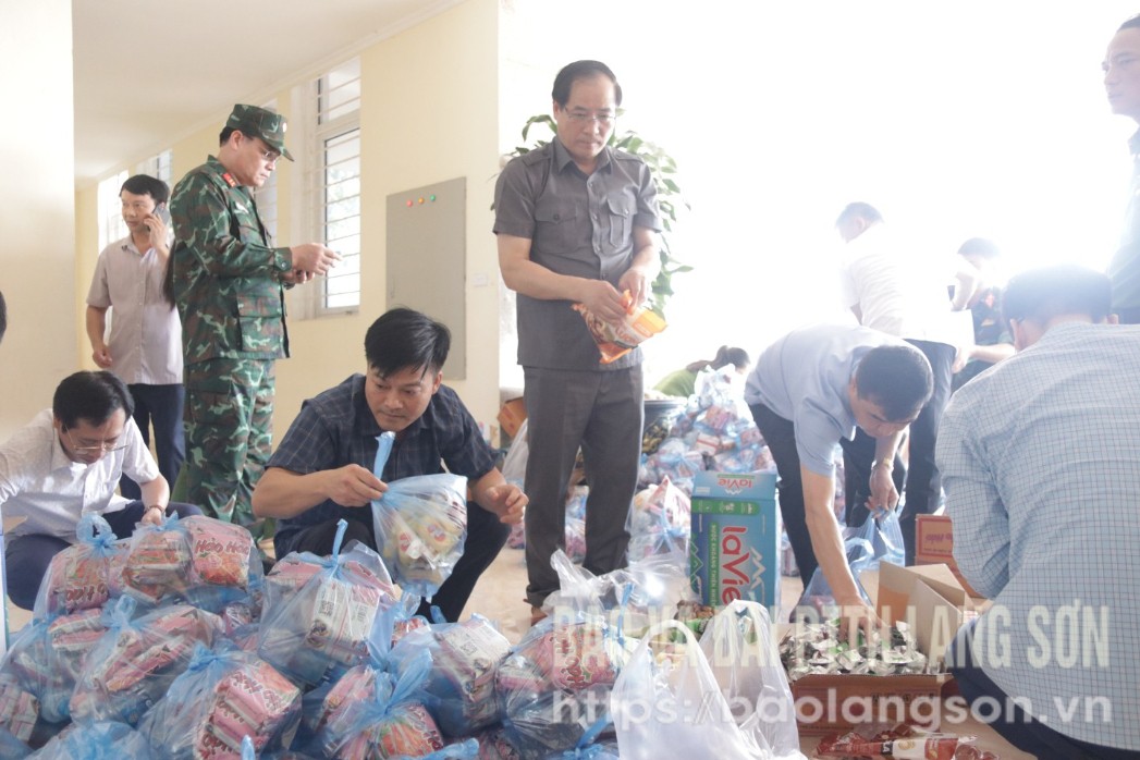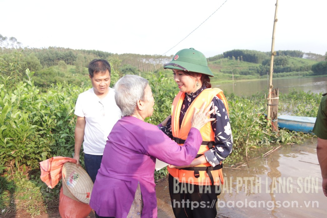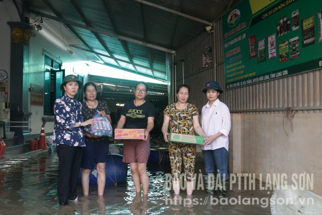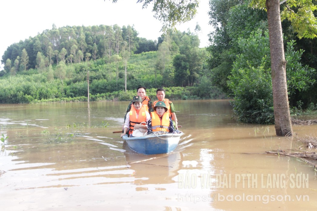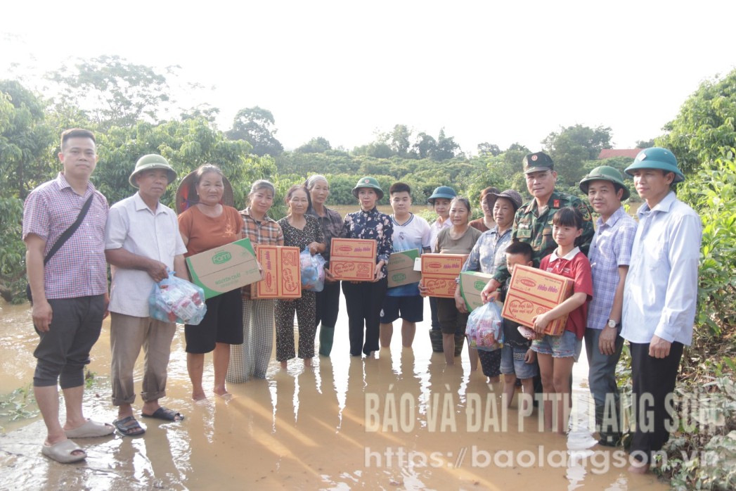 Lãnh đạo Báo và Đài Phát thanh truyền hình Lạng Sơn cùng các lực lượng vận chuyển nhu yếu phẩm thiết yếu hỗ trợ người dân vùng ngập úng