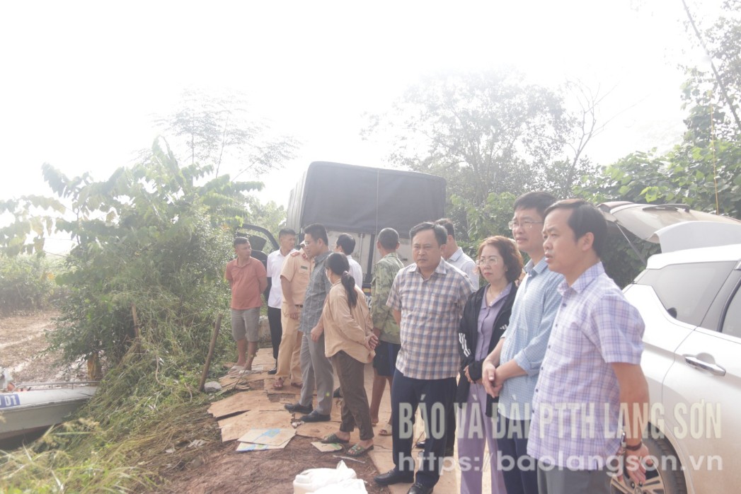 Đồng chí Lương Trọng Quỳnh, Ủy viên Ban Thường vụ Tỉnh ủy, Phó Chủ tịch UBND tỉnh kiểm tra thực tế công tác ứng phó ngập úng tại xã Hữu Lũng và một số khu vực lân cận