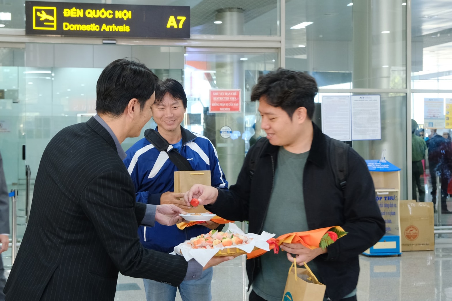 Các du khách được lãnh đạo UBND tỉnh tặng khăn choàng, quà lưu niệm mang đậm bản sắc địa phương, gồm gấu bông thanh long và các sản phẩm OCOP tiêu biểu của tỉnh. Song song đó, Vietnam Airlines cũng trao quà cho tổ lái và tổ tiếp viên thực hiện chuyến bay đặc biệt này.