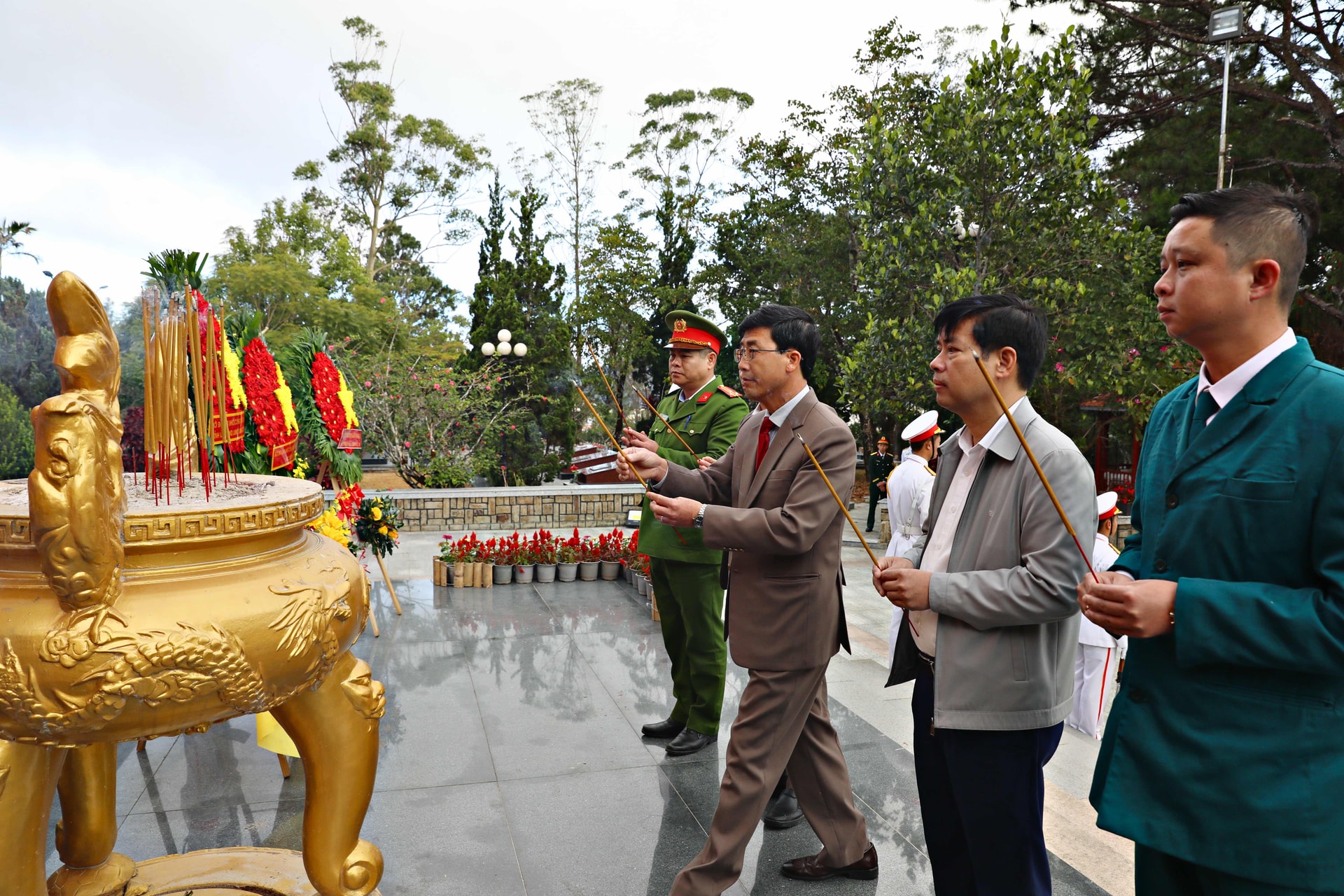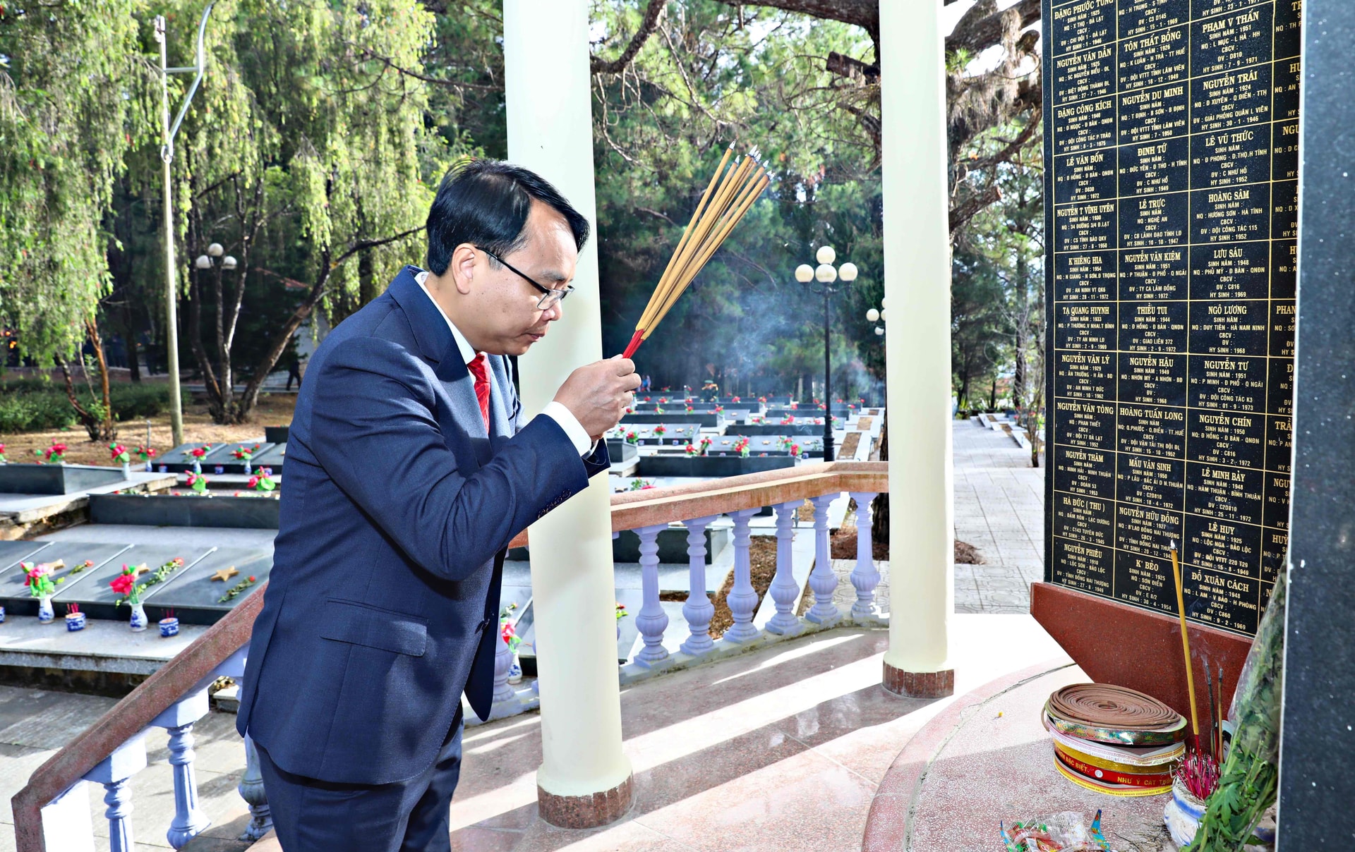 Phó Bí thư Thường trực Tỉnh ủy Lâm Đồng Đặng Hồng Sỹ thắp hương viếng các anh hùng liệt sĩ tại Nhà tưởng niệm