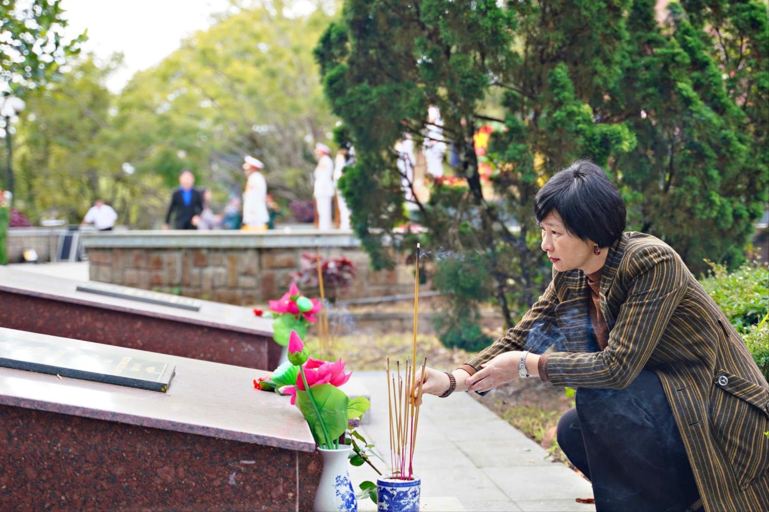 Đồng chí Phạm Thị Phúc, Phó Bí thư Tỉnh ủy, Chủ tịch Ủy ban MTTQ Việt Nam tỉnh Lâm Đồng thắp hương viếng các phần mộ liệt sĩ