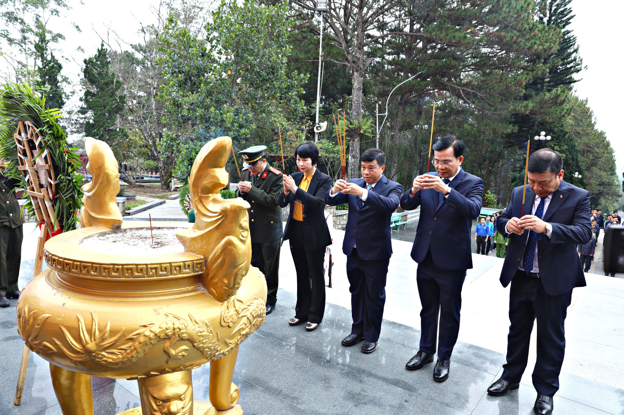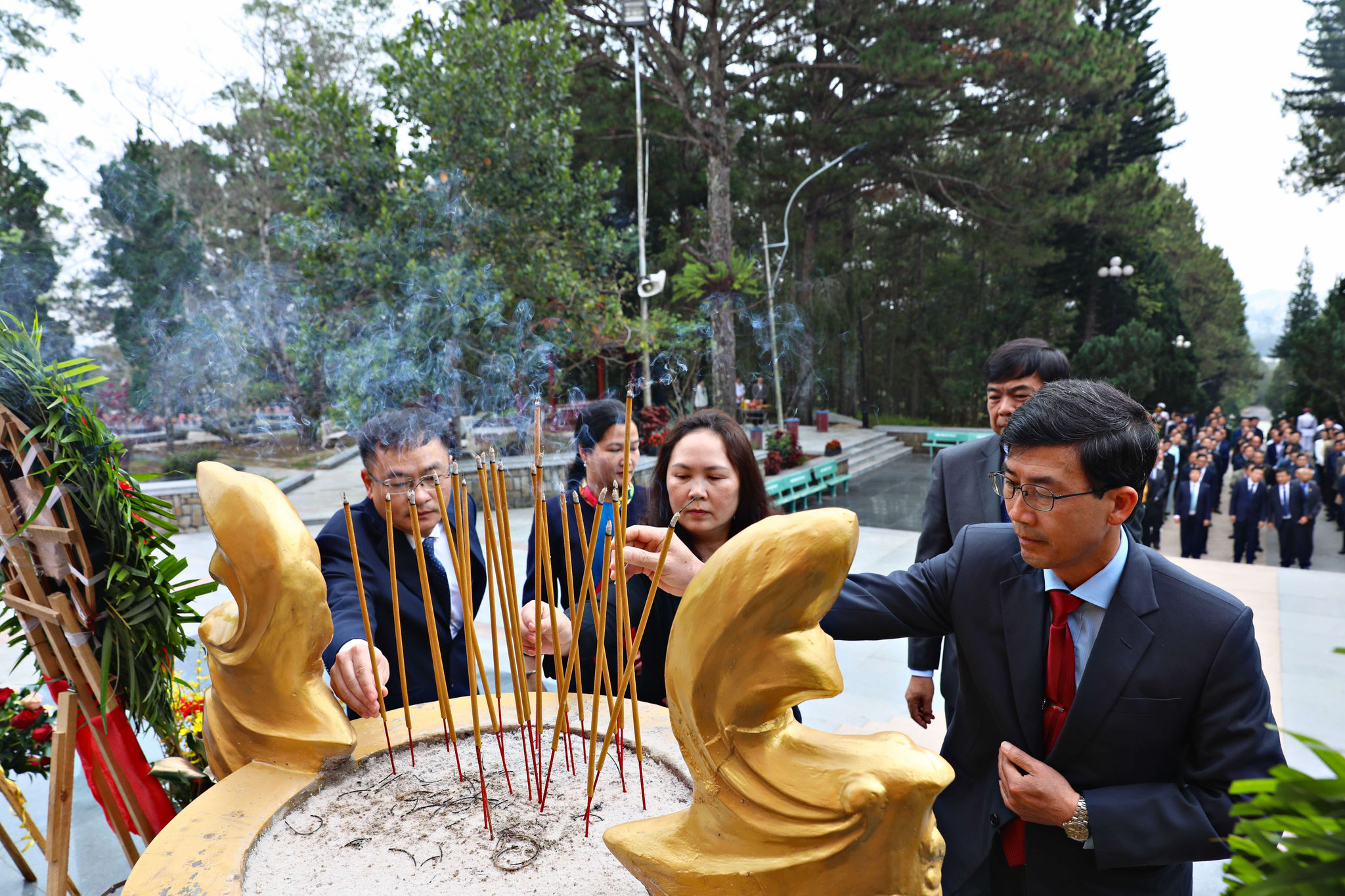 Chủ trì lễ dâng hoa, dâng hương tại Nghĩa trang Liệt sĩ Đà Lạt sáng nay có các đồng chí: Y Thanh Hà Niê Kđăm, Ủy viên Ban Chấp hành Trung ương Đảng, Bí thư Tỉnh ủy, Trưởng Đoàn ĐBQH tỉnh Lâm Đồng; Hồ Văn Mười, Ủy viên Ban Chấp hành Trung ương Đảng, Phó Bí thư Tỉnh ủy, Chủ tịch UBND tỉnh Lâm Đồng; Phạm Thị Phúc, Phó Bí thư Tỉnh ủy, Chủ tịch Ủy ban MTTQ Việt Nam tỉnh Lâm Đồng; Bùi Thắng, Phó Bí thư Tỉnh ủy Lâm Đồng.