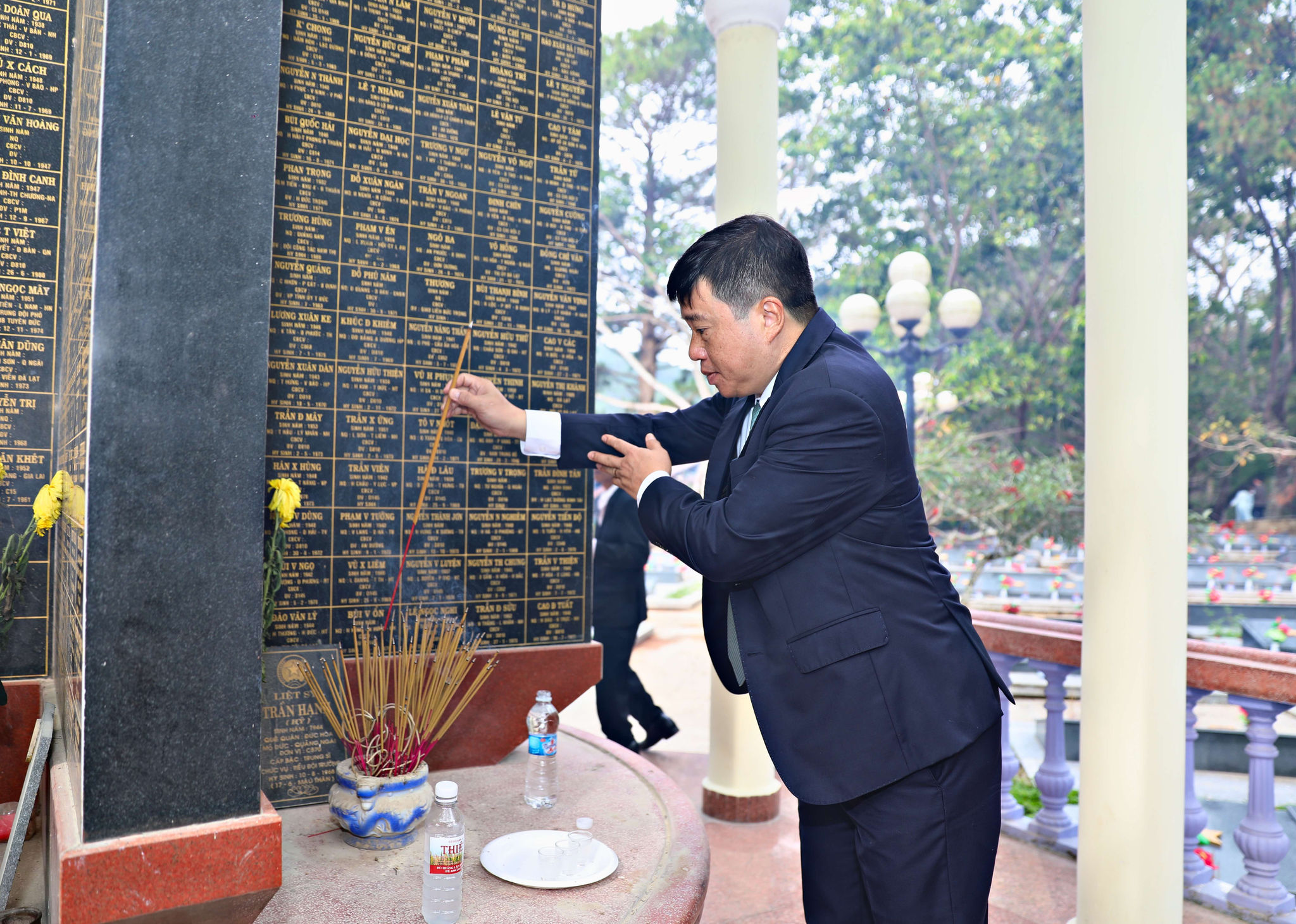 Đồng chí Bùi Thắng, Phó Bí thư Tỉnh ủy Lâm Đồng thắp hương viếng các phần mộ liệt sĩ