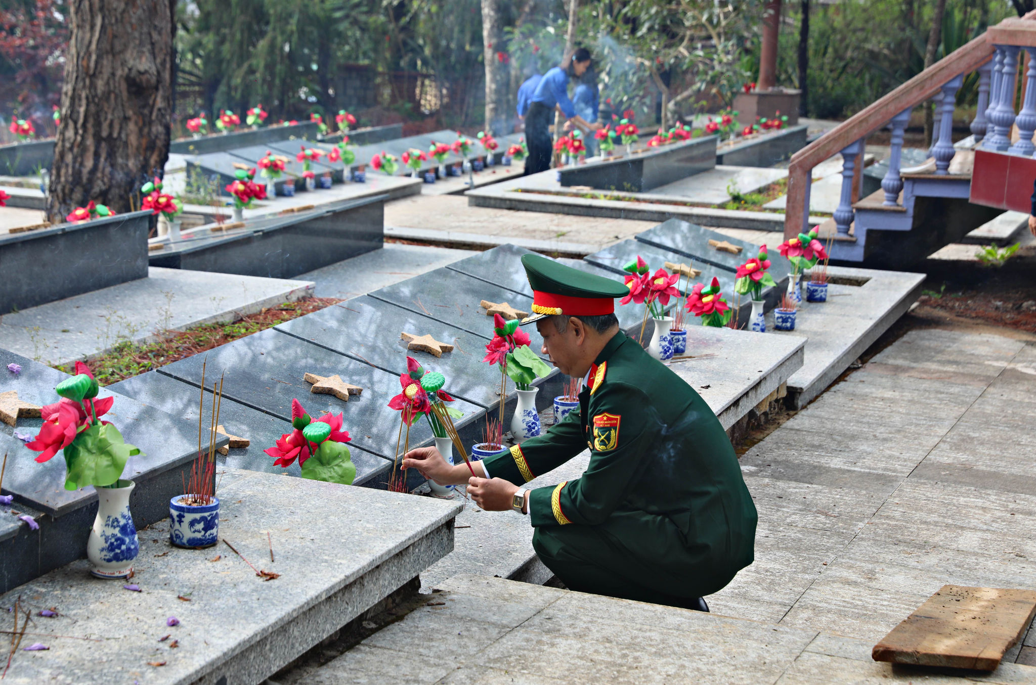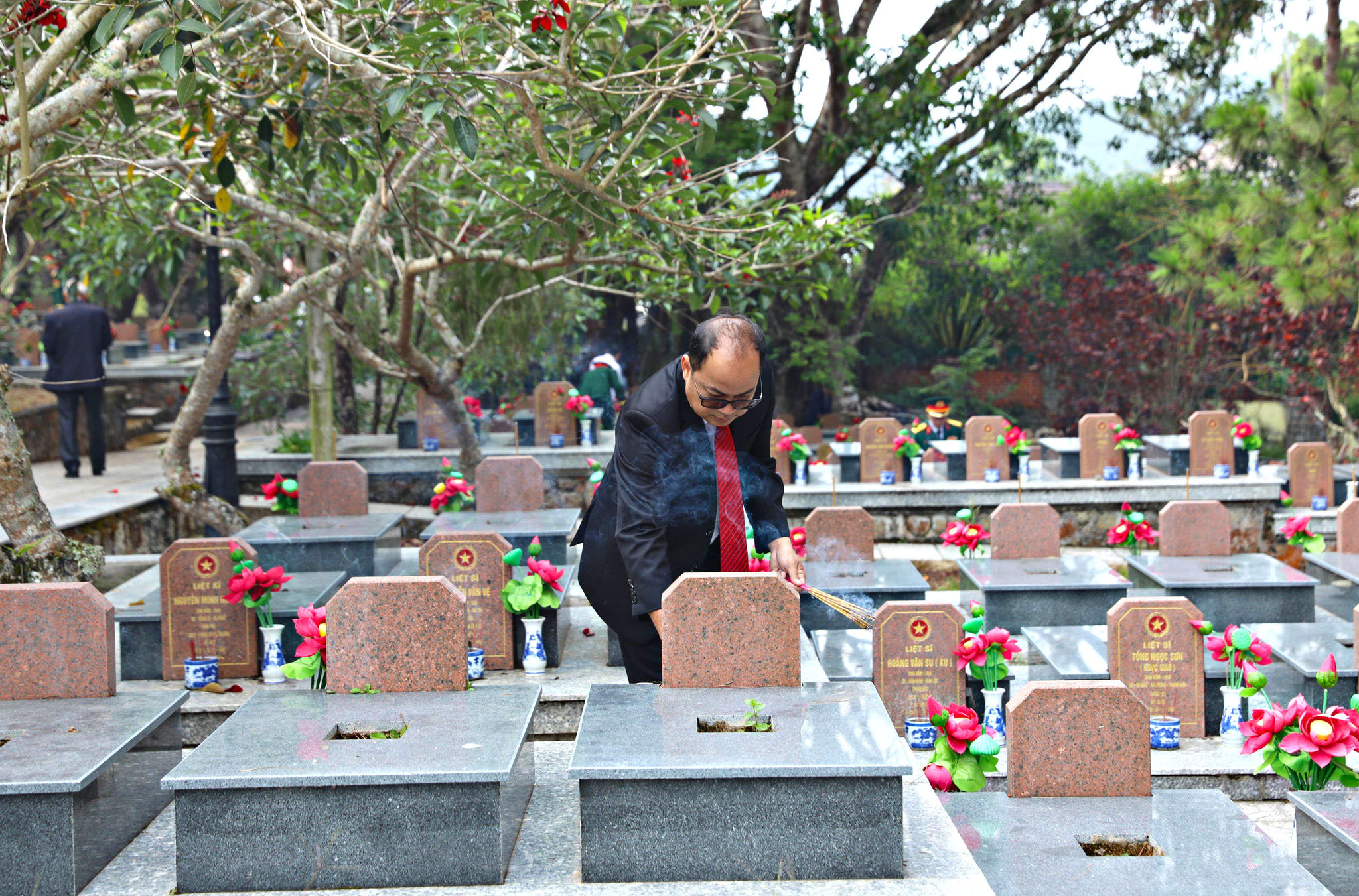 Sau nghi thức dâng hương, các đồng chí lãnh đạo tỉnh đã thắp hương trên từng phần mộ liệt sĩ, bày tỏ lòng tri ân sâu sắc đối với những người con ưu tú của quê hương và cả nước đã ngã xuống trong các cuộc kháng chiến. Nhiều phần mộ liệt sĩ chưa xác định được danh tính càng gợi lên niềm xúc động, nhắc nhở các thế hệ hôm nay về giá trị của hòa bình.
