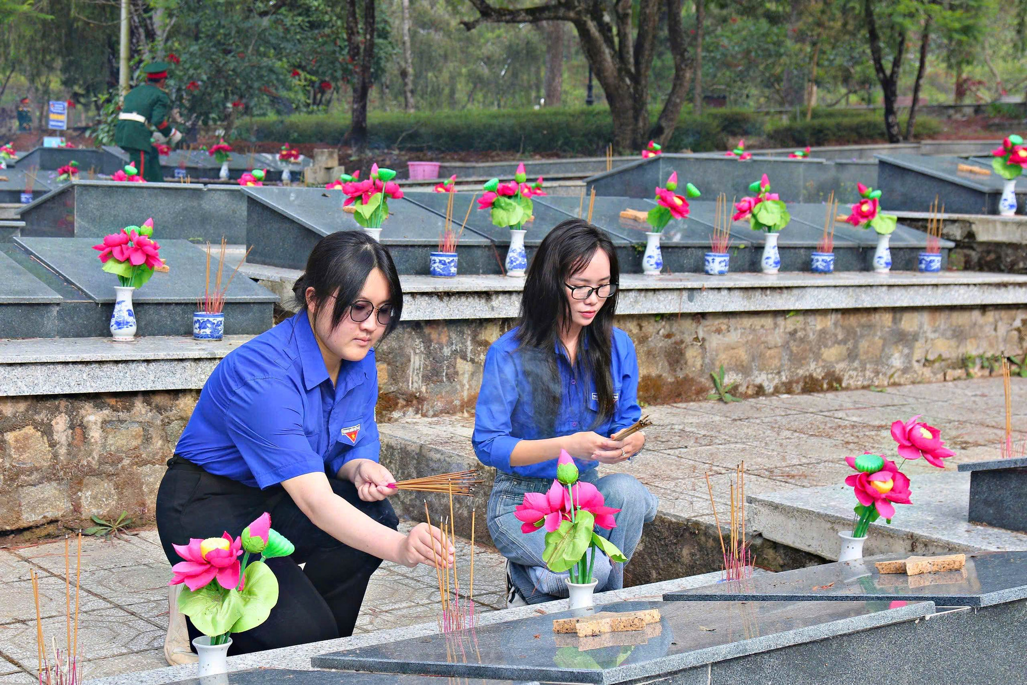 Đoàn viên, thanh niên thắp hương tri ân, tưởng nhớ các Anh hùng liệt sĩ tại Nghĩa trang Liệt sĩ Đà Lạt