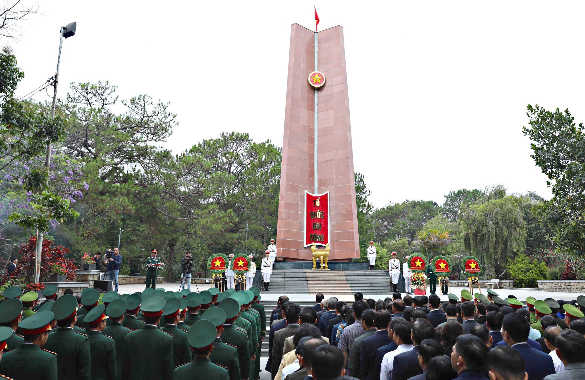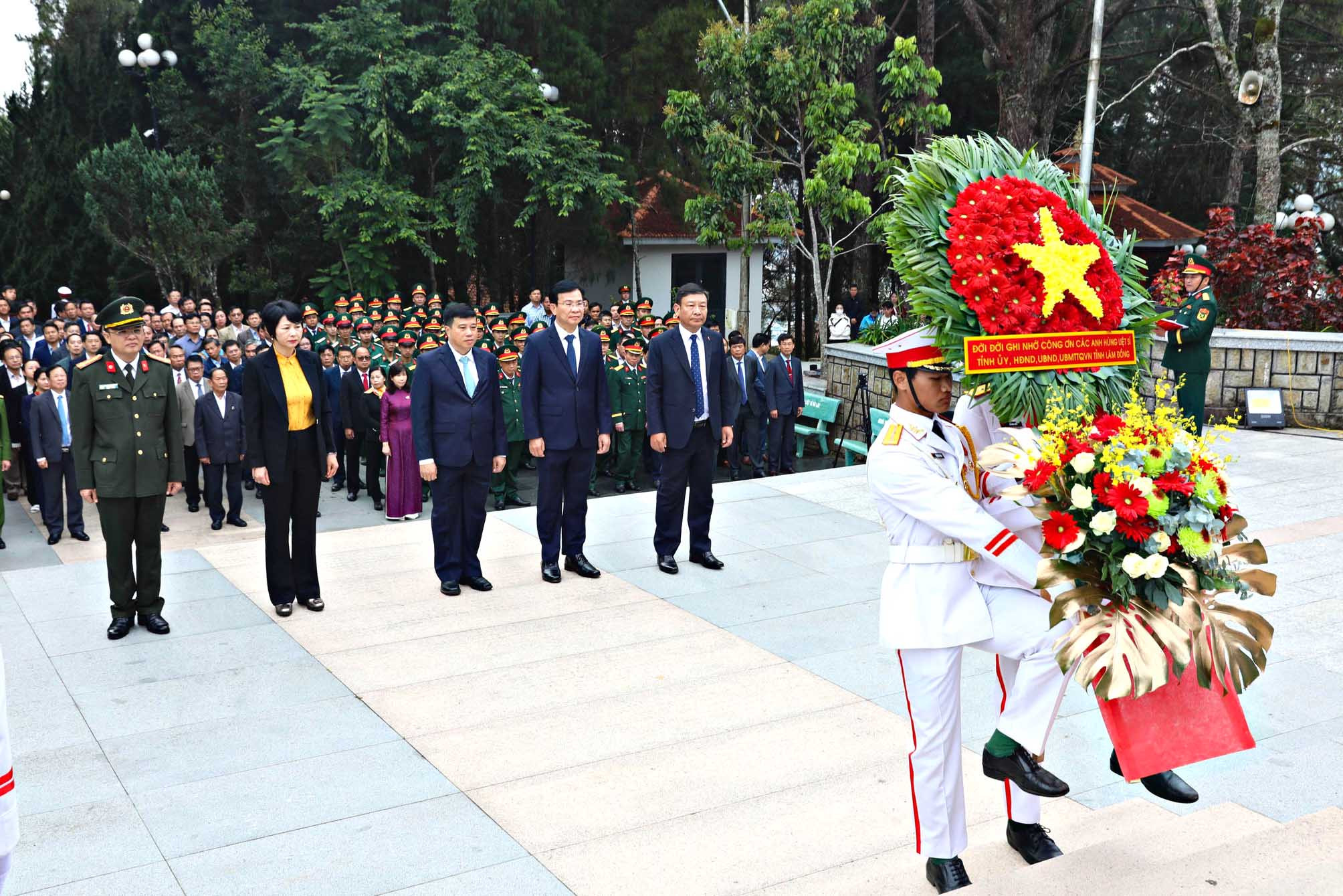 Các đồng chí lãnh đạo tỉnh Lâm Đồng làm Lễ dâng hoa viếng các Anh hùng liệt sĩ