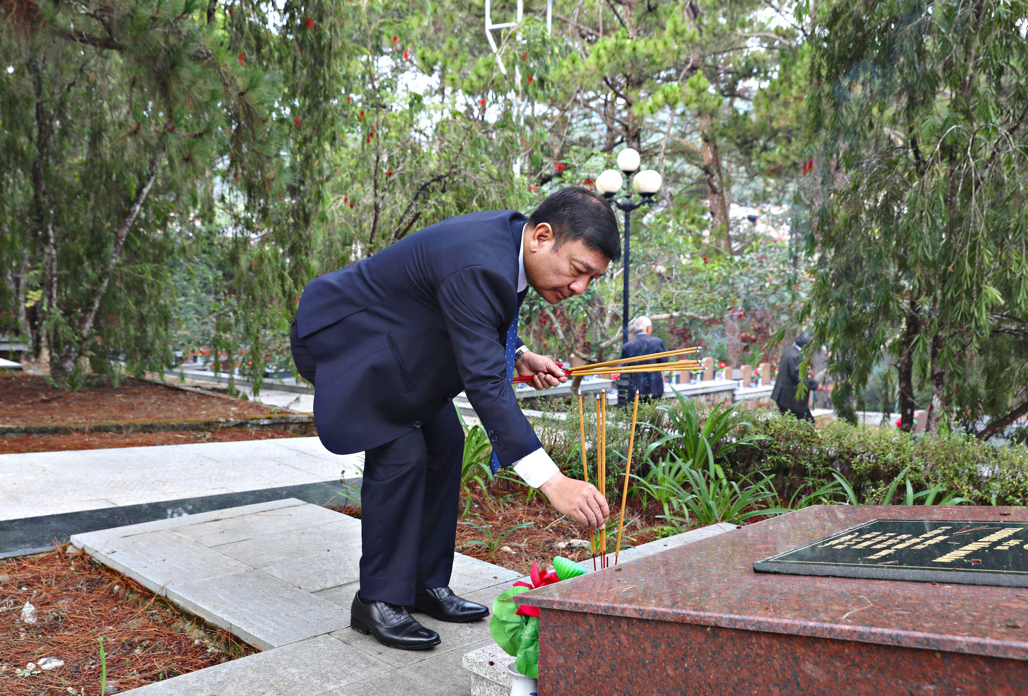 Các đại biểu thắp hương phần mộ Anh hùng liệt sĩ tại Nghĩa trang Liệt sĩ Đà Lạt
