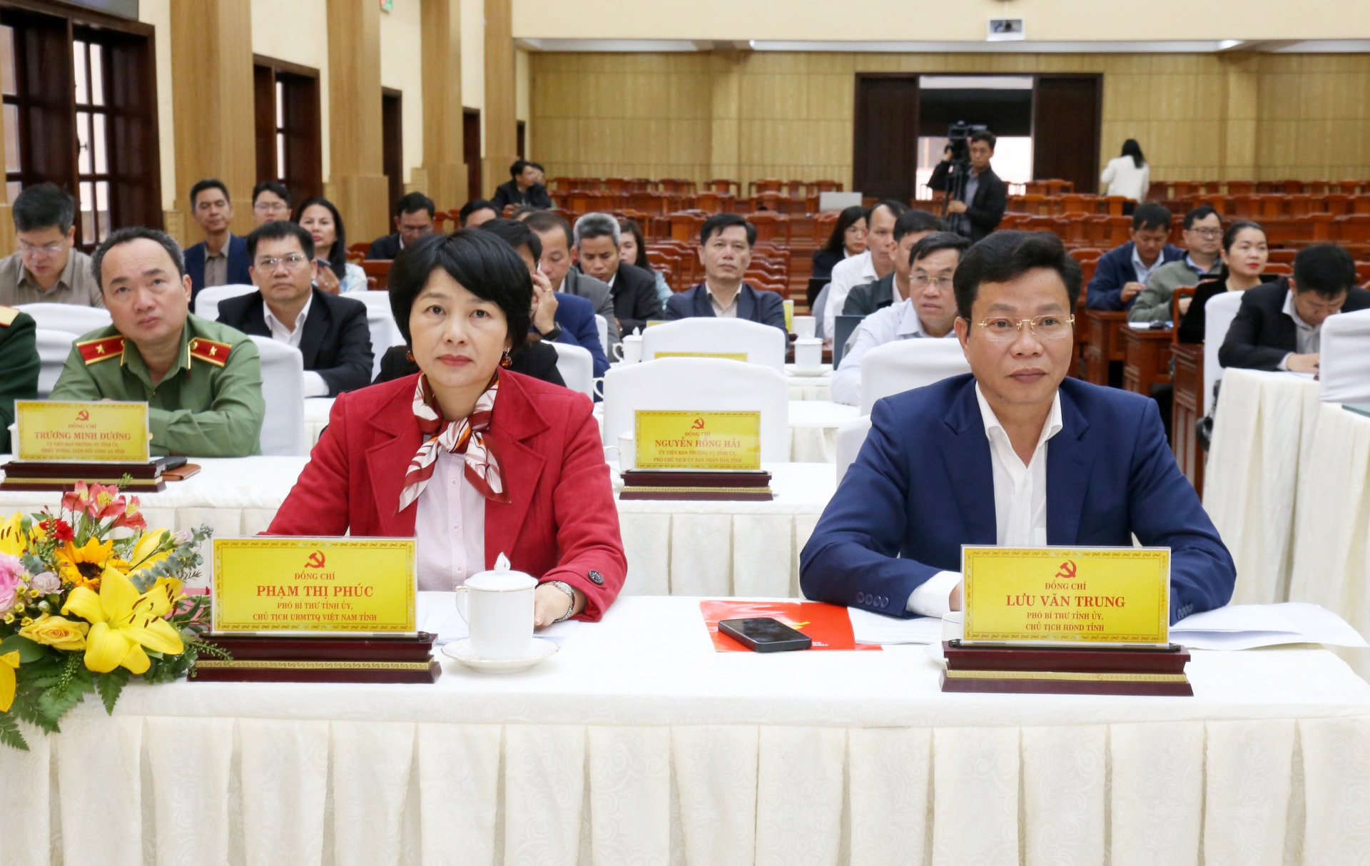Đồng chí Lưu Văn Trung, Phó Bí thư Tỉnh ủy, Chủ tịch HĐND tỉnh và đồng chí Phạm Thị Phúc, Phó Bí thư Tỉnh ủy, Chủ tịch Ủy ban MTTQ Việt Nam tỉnh tham dự hội nghị
