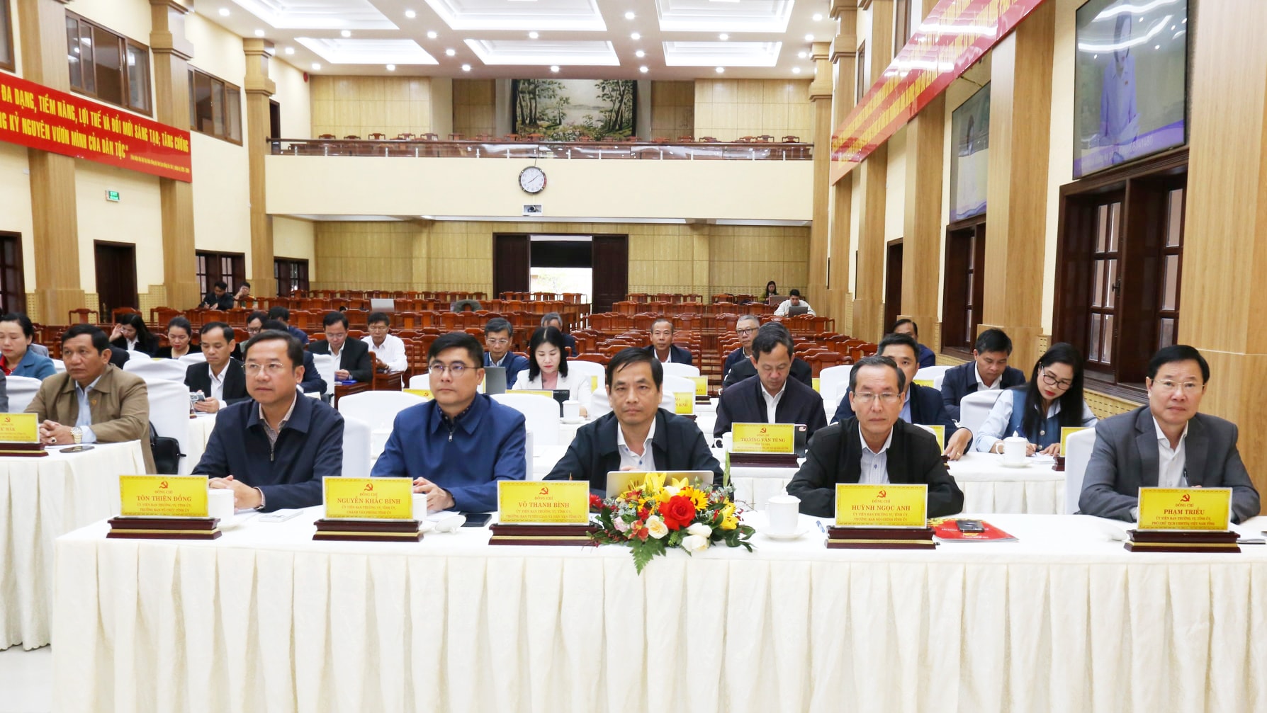 Các đồng chí trong Ban Thường vụ Tỉnh ủy Lâm Đồng tham dự hội nghị