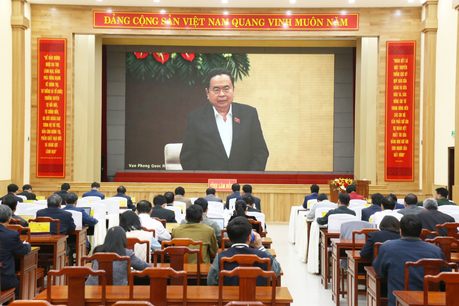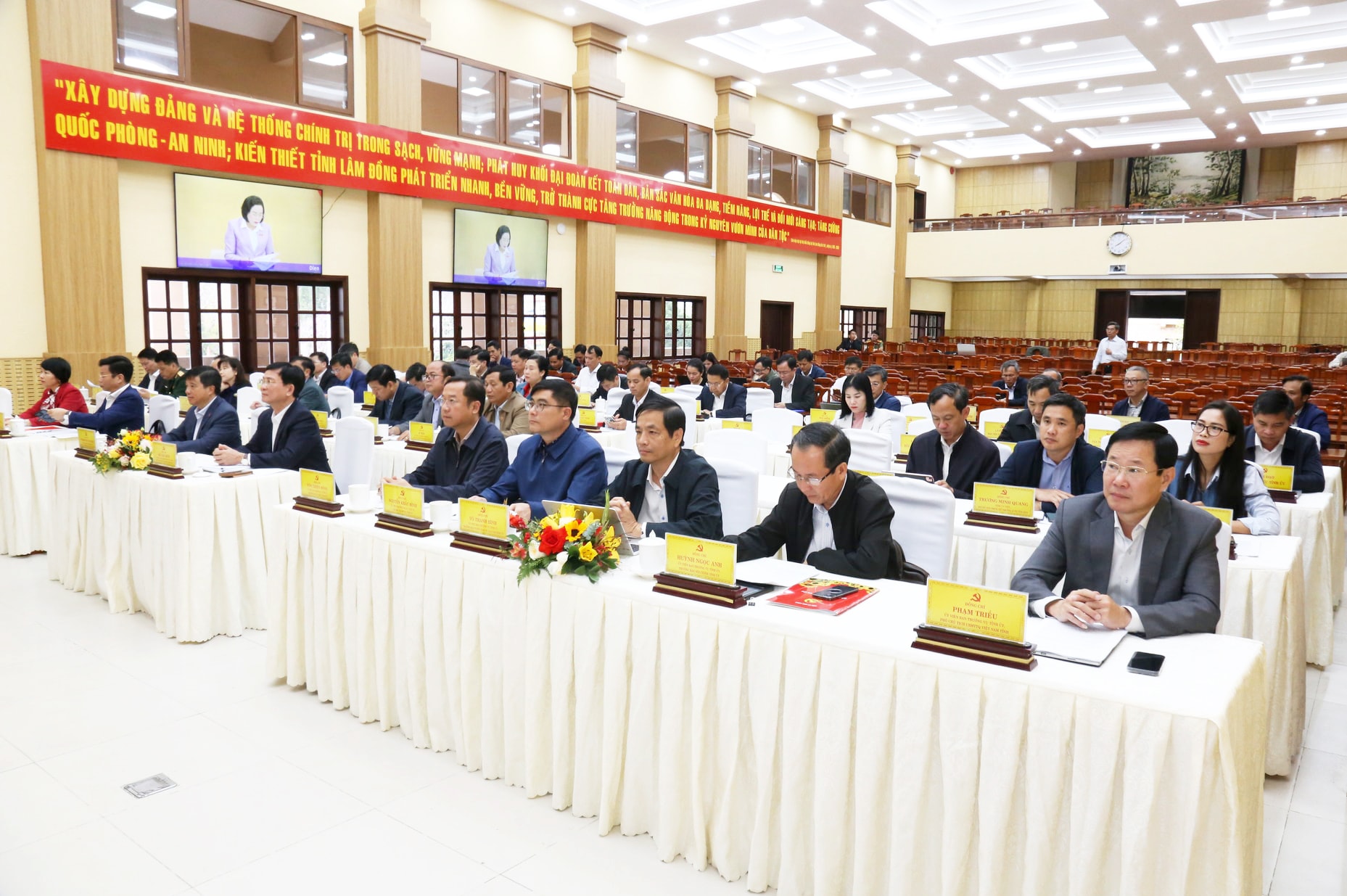 Tham dự cuộc họp tại điểm cầu tỉnh Lâm Đồng có các đồng chí: Y Thanh Hà Niê Kđăm, Ủy viên Ban Chấp hành Trung ương Đảng, Bí thư Tỉnh ủy, Trưởng Đoàn ĐBQH tỉnh; Hồ Văn Mười, Ủy viên Ban Chấp hành Trung ương Đảng, Phó Bí thư Tỉnh ủy, Chủ tịch UBND tỉnh; Lưu Văn Trung, Phó Bí thư Tỉnh ủy, Chủ tịch HĐND tỉnh; Phạm Thị Phúc, Phó Bí thư Tỉnh ủy, Chủ tịch Ủy ban MTTQ Việt Nam tỉnh.