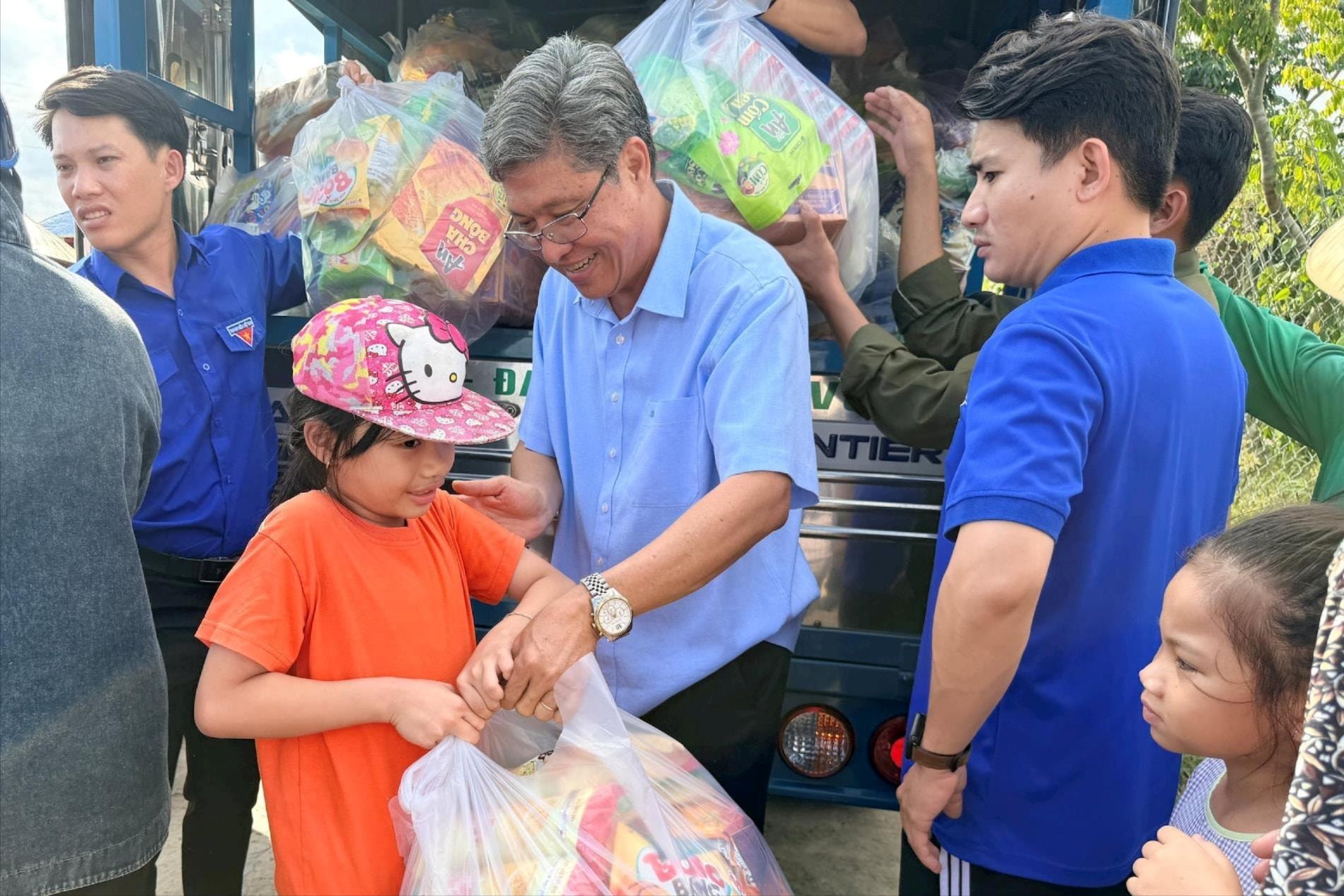 Phó Chủ tịch UBND tỉnh Nguyễn Minh trao quà cho người dân xã Hàm Kiệm