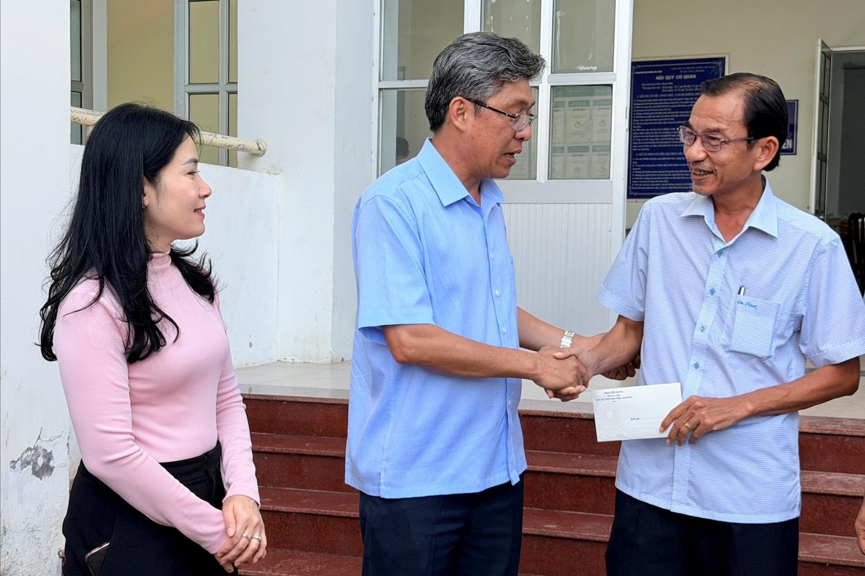 Phó Chủ tịch UBND tỉnh Lâm Đồng Nguyễn Minh tặng quà và động viên lãnh đạo phường Tiến Thành