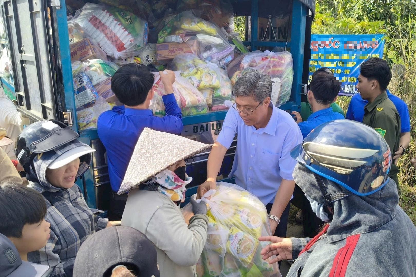 Trực tiếp đến thăm các điểm ngập lụt, Phó Chủ tịch UBND tỉnh Lâm Đồng đã trò chuyện với hàng trăm hộ dân bị ngập vào đêm 30/10, trao tặng quà cứu trợ nhu yếu phẩm thiết yếu.