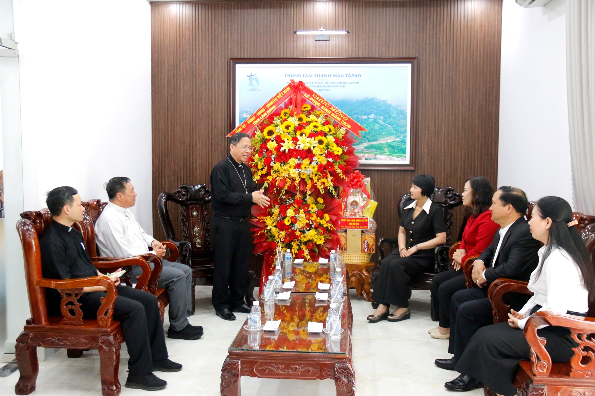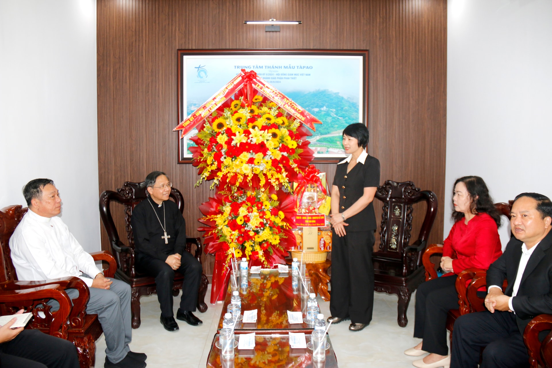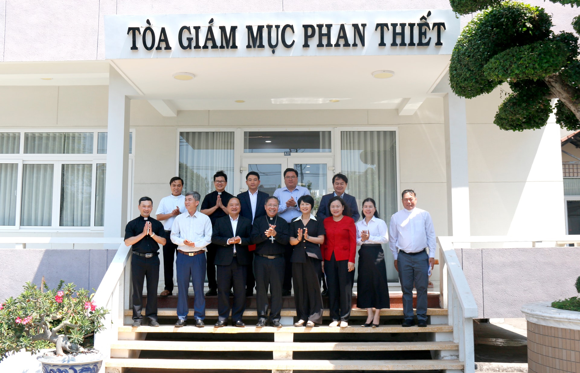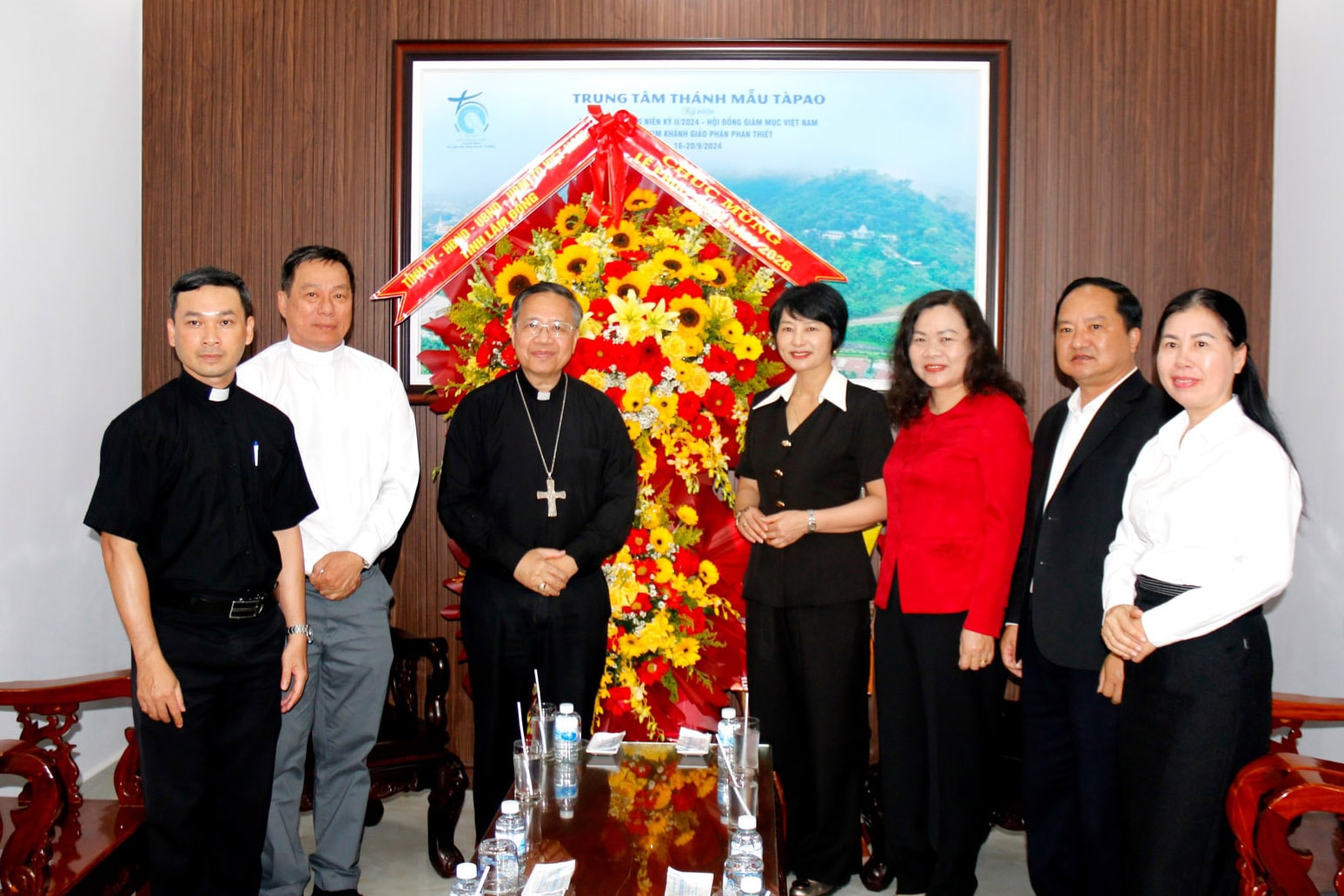 Cùng đi với đoàn có đại diện lãnh đạo Thường trực HĐND - UBND - Ủy ban MTTQ Việt Nam tỉnh và các sở, ngành liên quan. Giám mục Giuse Đỗ Mạnh Hùng, Giám mục chính tòa Giáo phận Phan Thiết, Tổng Thư ký Hội đồng Giám mục Việt Nam, cùng các vị linh mục, tu sĩ tiếp đoàn.