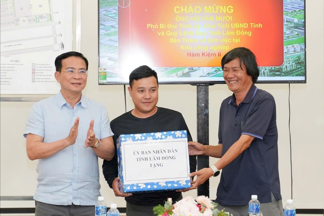 Nhân dịp năm mới, Chủ tịch UBND tỉnh Lâm Đồng cũng đã trao tặng phần quà đến người lao động ở Khu Công nghiệp Hàm Kiệm II