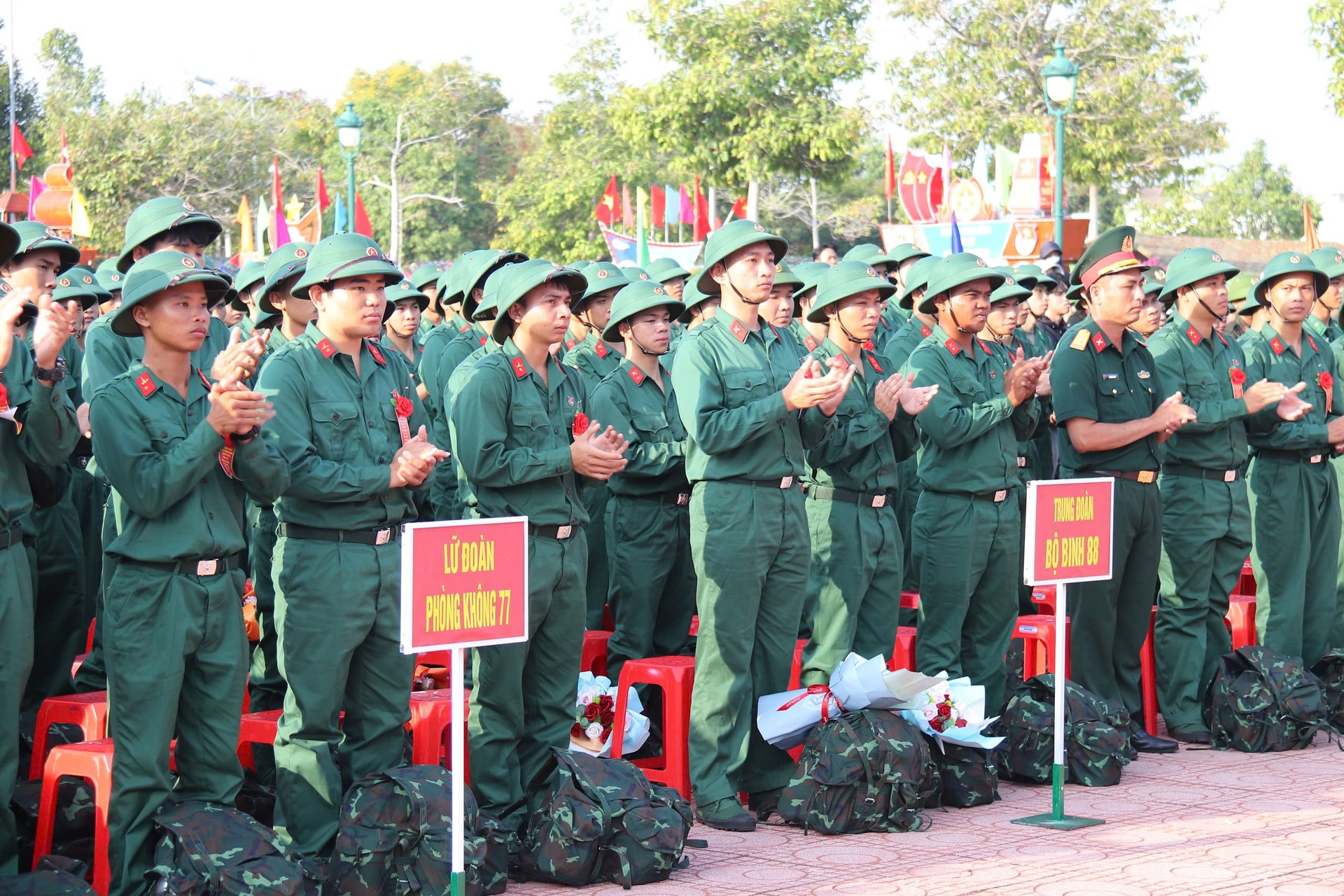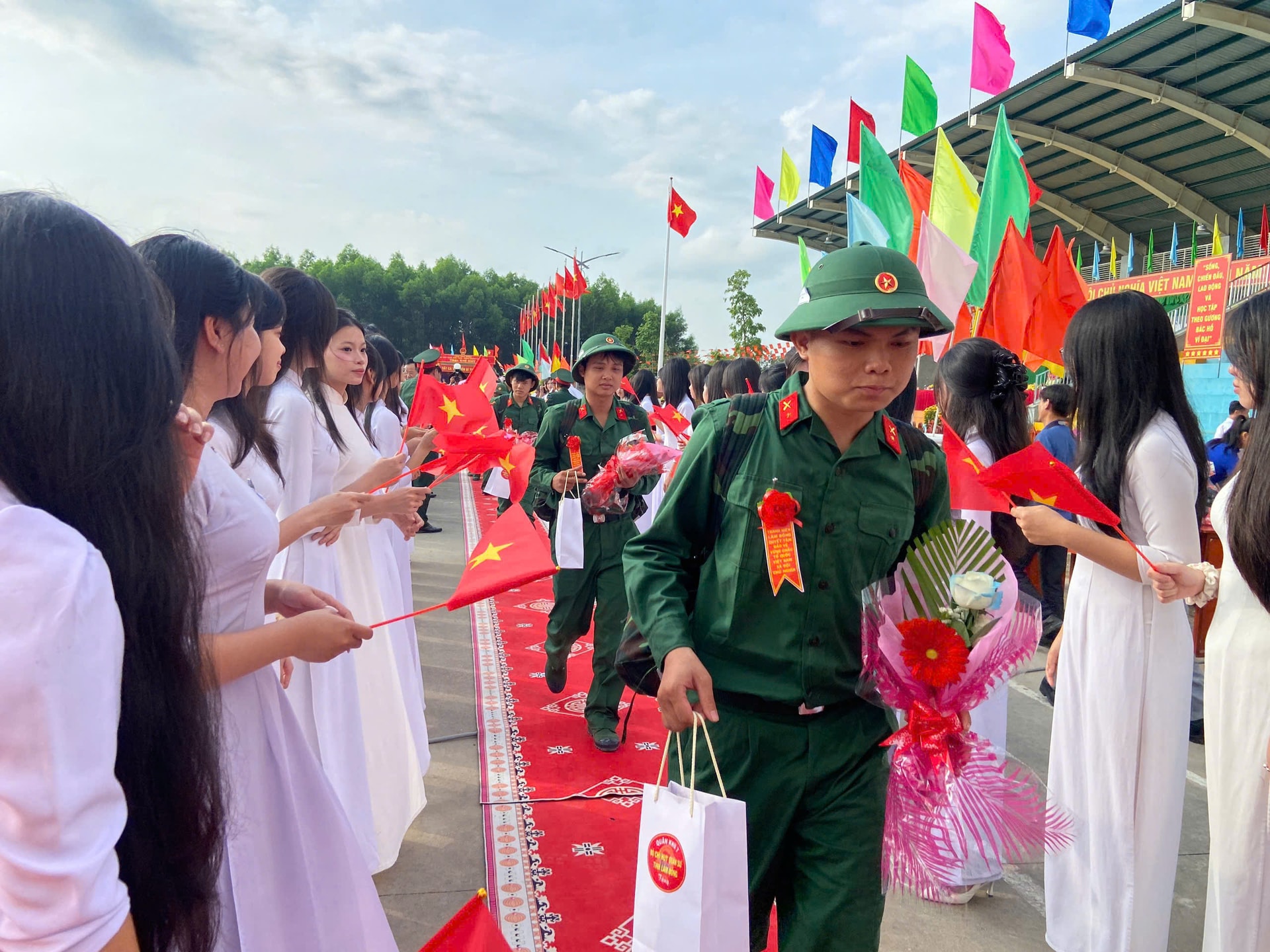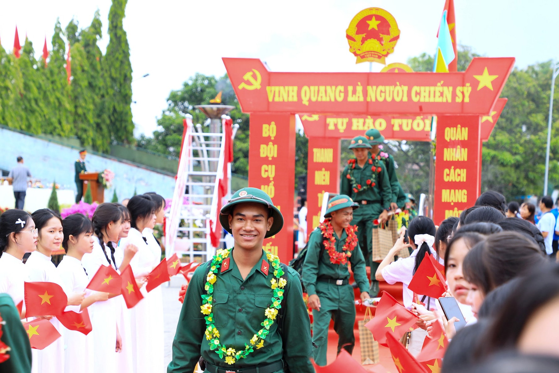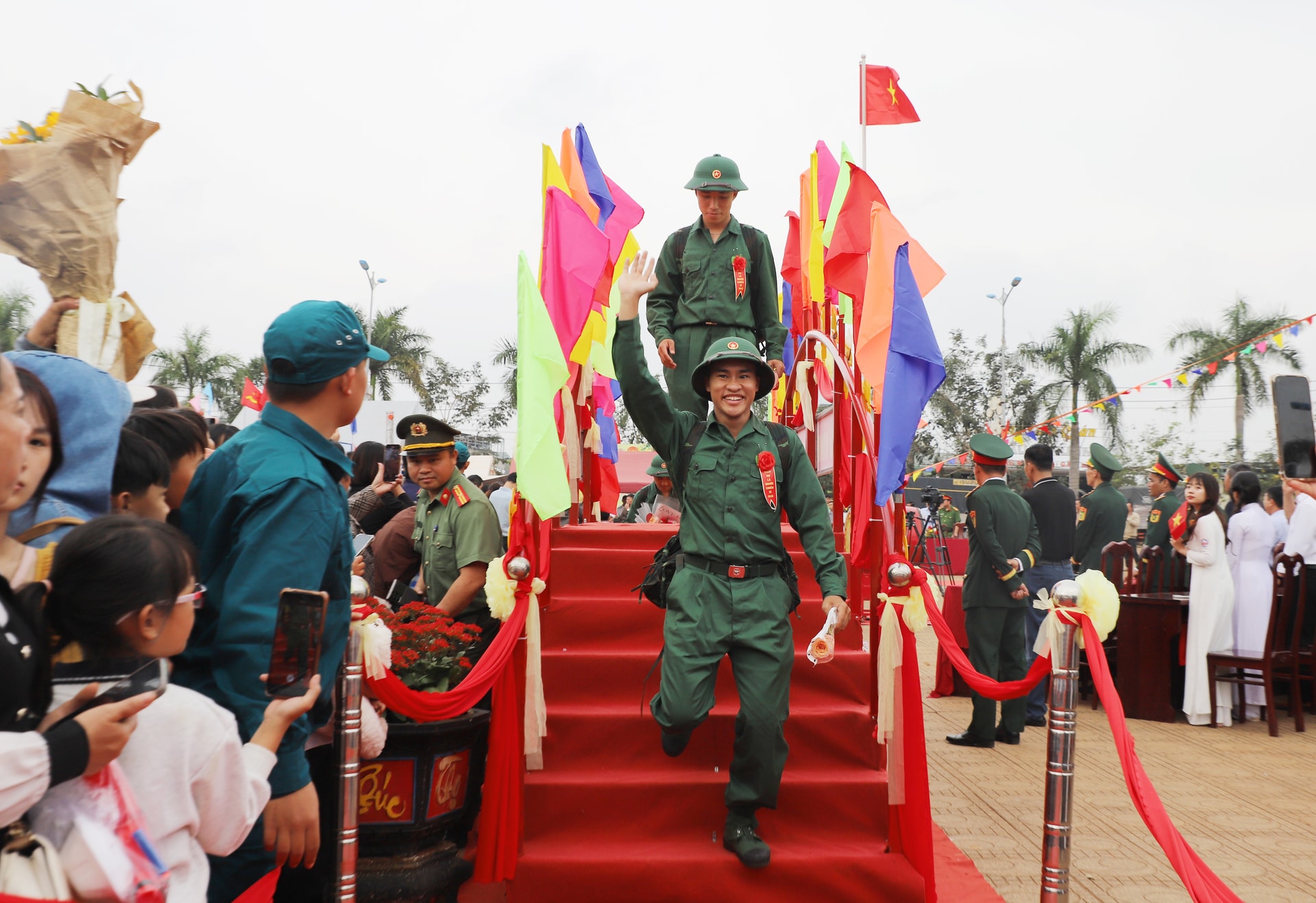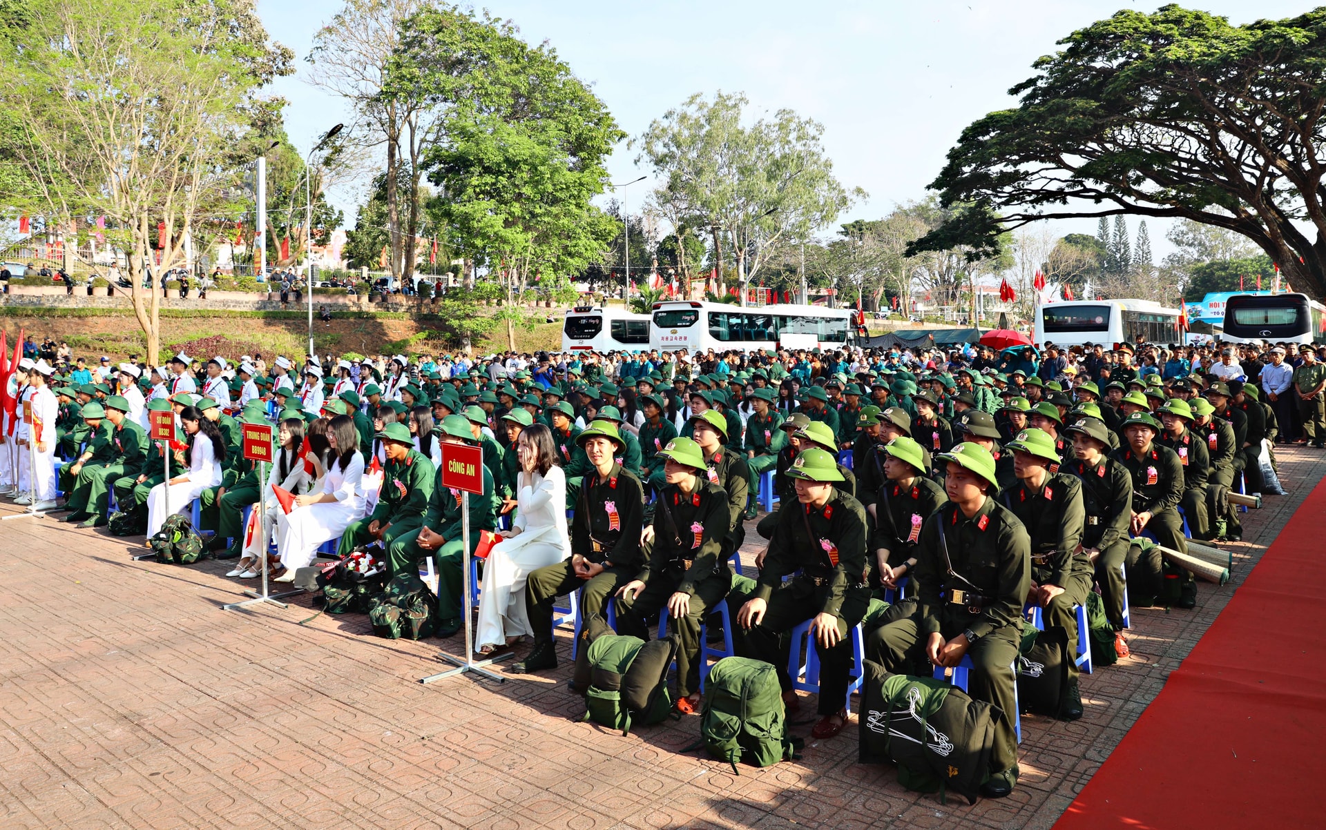 Dù lễ chính thức bắt đầu lúc 7 giờ 30 phút, nhưng từ sáng sớm, không khí tại khu vực tổ chức đã rộn ràng, cờ hoa rực rỡ. Đông đảo người thân, bạn bè và Nhân dân có mặt để tiễn con em mình lên đường làm nhiệm vụ. Những cái bắt tay thật chặt, những lời dặn dò ân cần, những ánh mắt vừa tự hào vừa lưu luyến đã tạo nên khoảnh khắc xúc động, tiếp thêm động lực cho các tân binh.