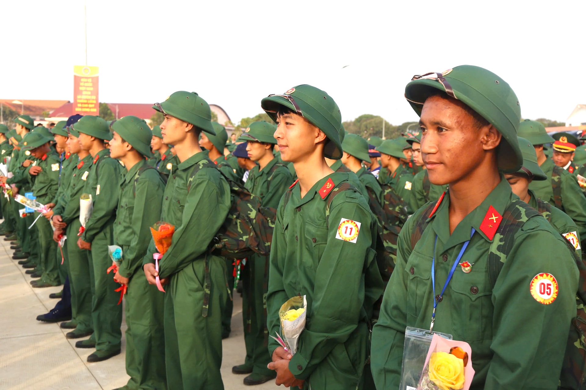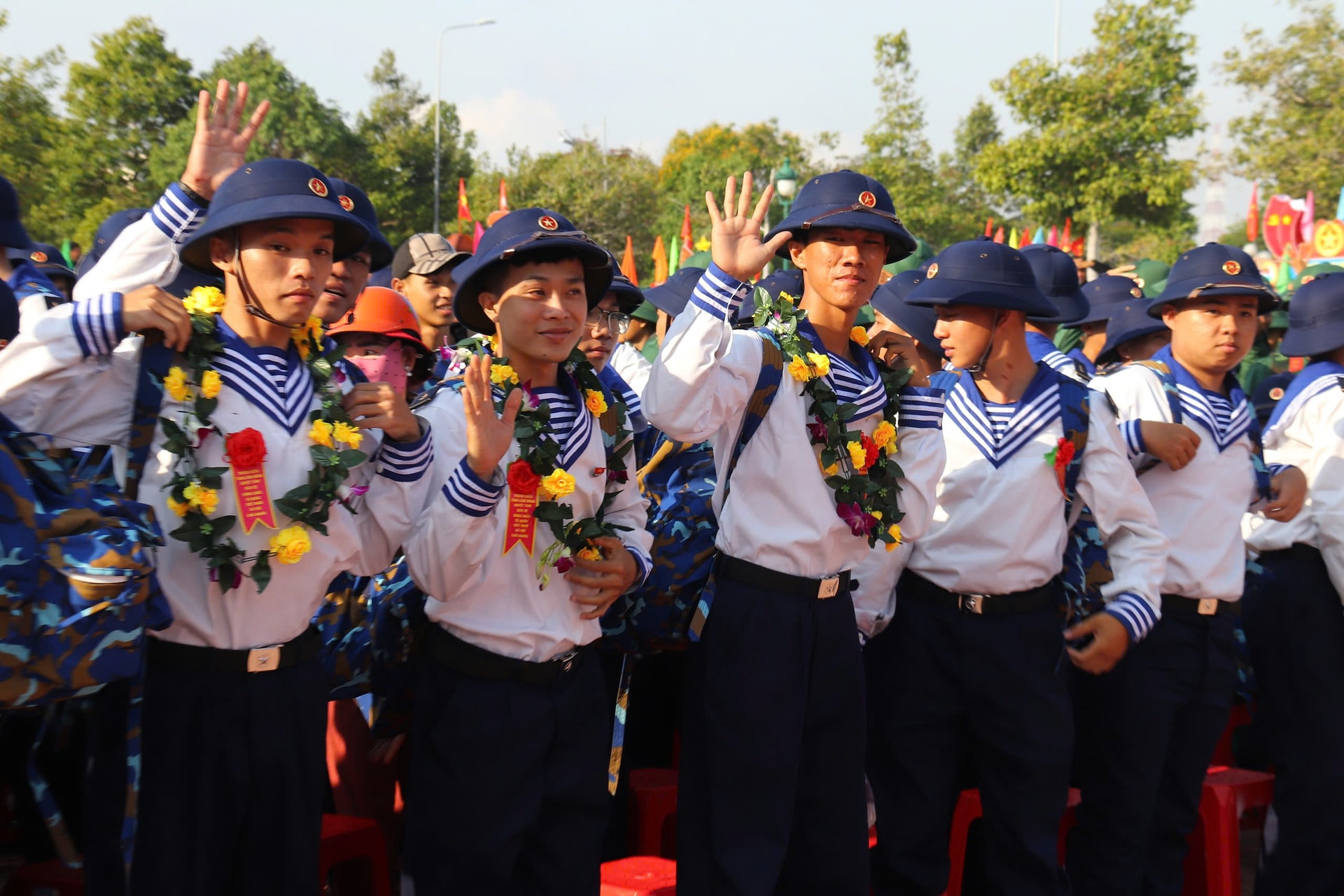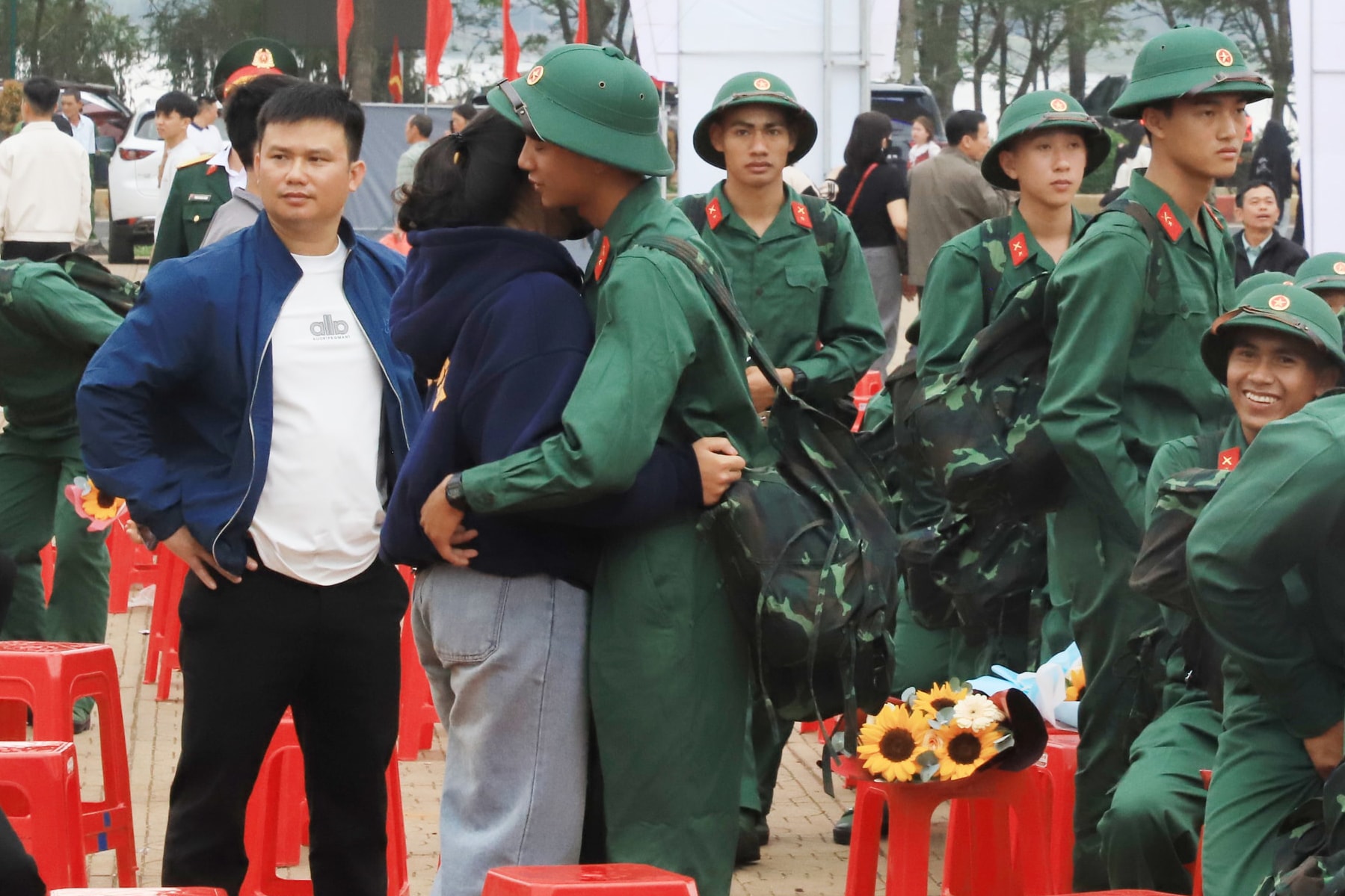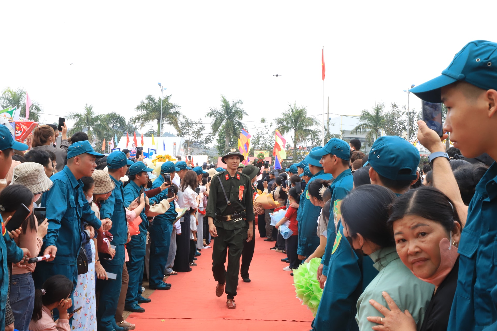 Dù lễ chính thức bắt đầu lúc 7 giờ 30 phút, nhưng từ sáng sớm, không khí tại khu vực tổ chức đã rộn ràng, cờ hoa rực rỡ. Đông đảo người thân, bạn bè và Nhân dân có mặt để tiễn con em mình lên đường làm nhiệm vụ. Những cái bắt tay thật chặt, những lời dặn dò ân cần, những ánh mắt vừa tự hào vừa lưu luyến đã tạo nên khoảnh khắc xúc động, tiếp thêm động lực cho các tân binh.