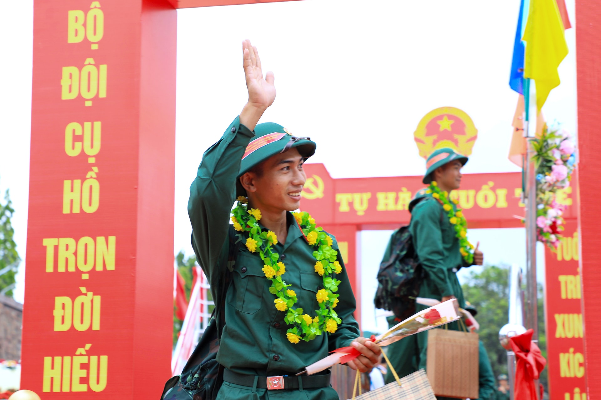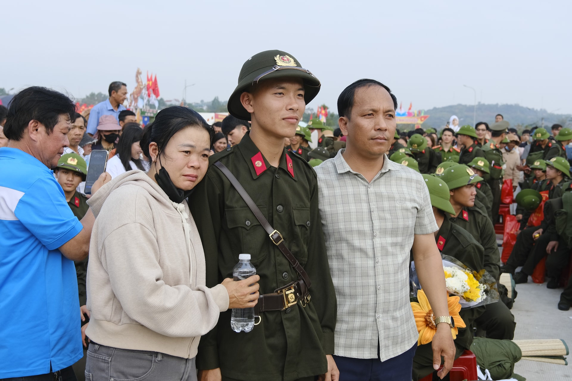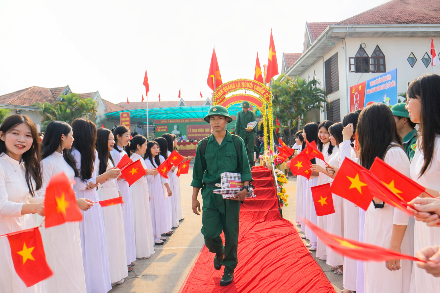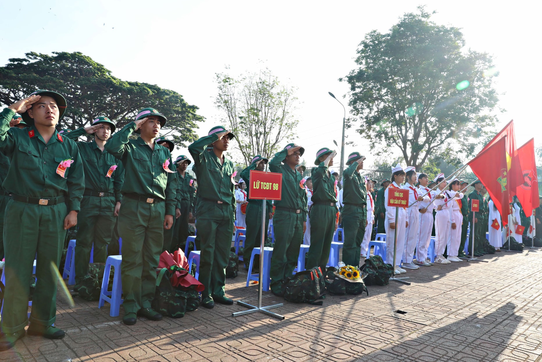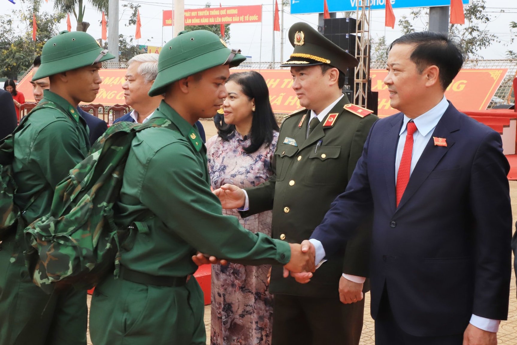 Dù lễ chính thức bắt đầu lúc 7 giờ 30 phút, nhưng từ sáng sớm, không khí tại khu vực tổ chức đã rộn ràng, cờ hoa rực rỡ. Đông đảo người thân, bạn bè và Nhân dân có mặt để tiễn con em mình lên đường làm nhiệm vụ. Những cái bắt tay thật chặt, những lời dặn dò ân cần, những ánh mắt vừa tự hào vừa lưu luyến đã tạo nên khoảnh khắc xúc động, tiếp thêm động lực cho các tân binh.