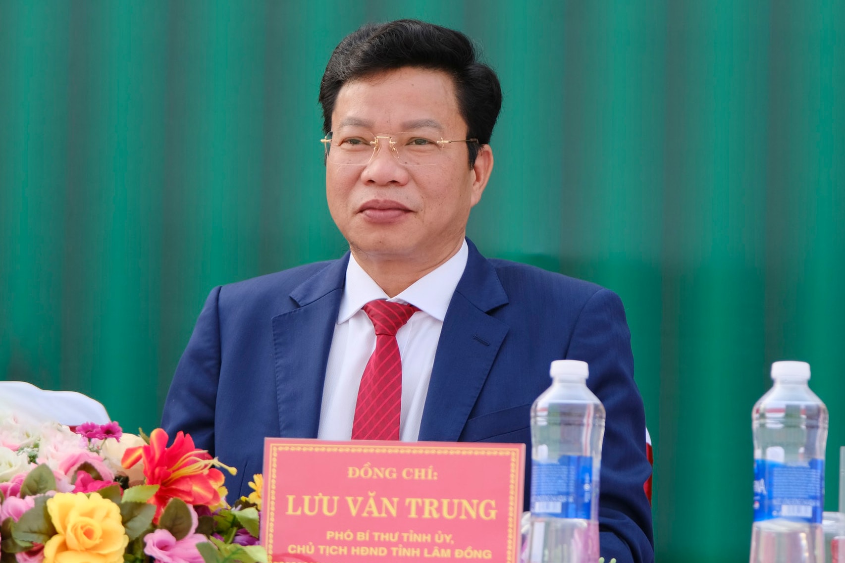 Đồng chí Lưu Văn Trung, Phó Bí thư Tỉnh ủy, Chủ tịch HĐND tỉnh Lâm Đồng cùng các đại biểu thực hiện nghi thức chào cờ