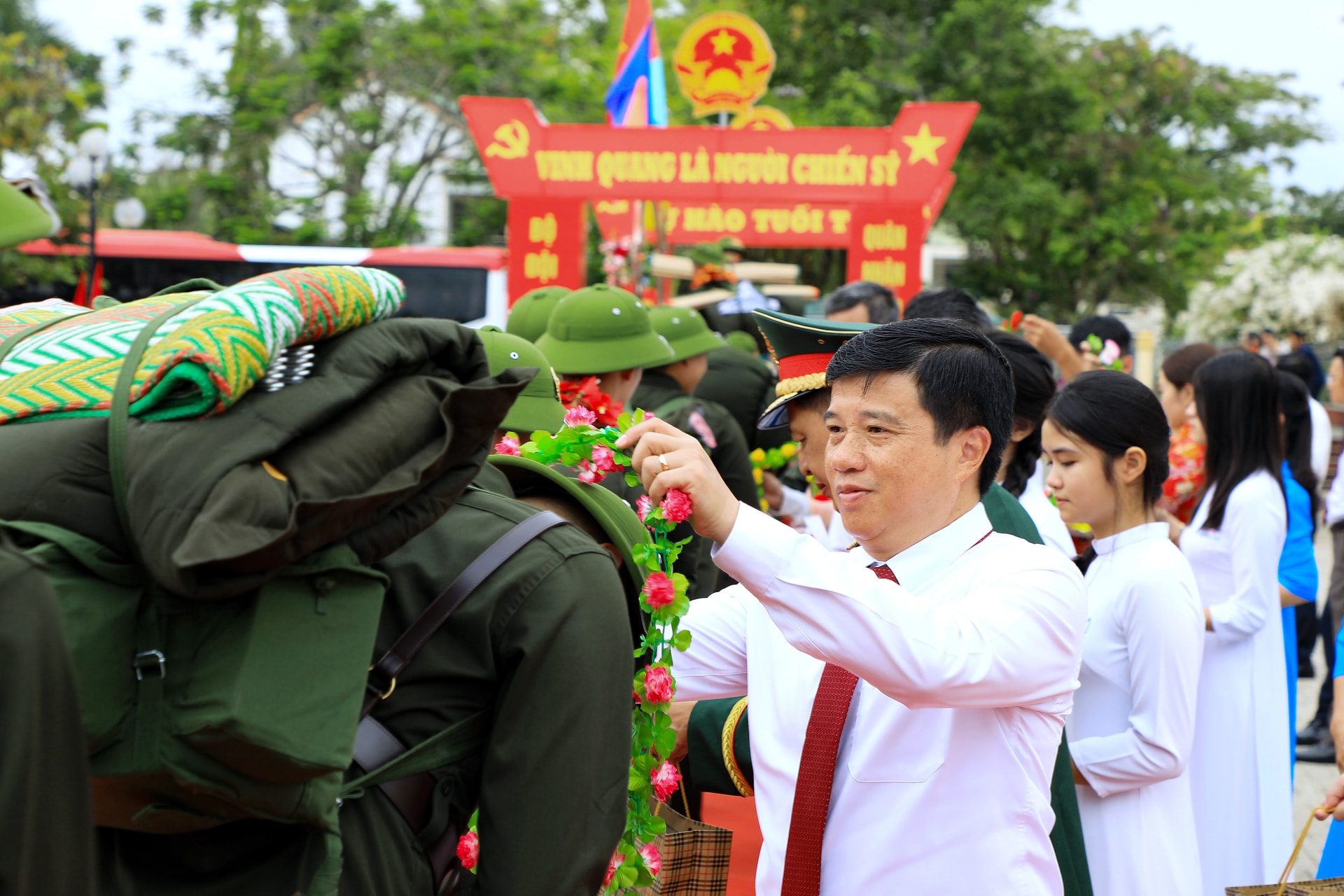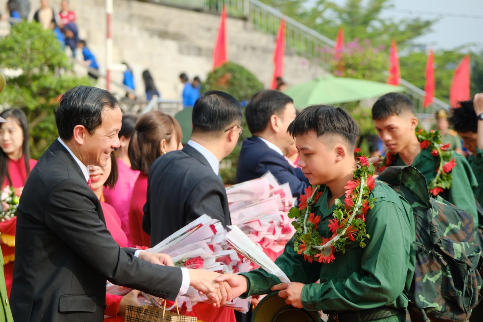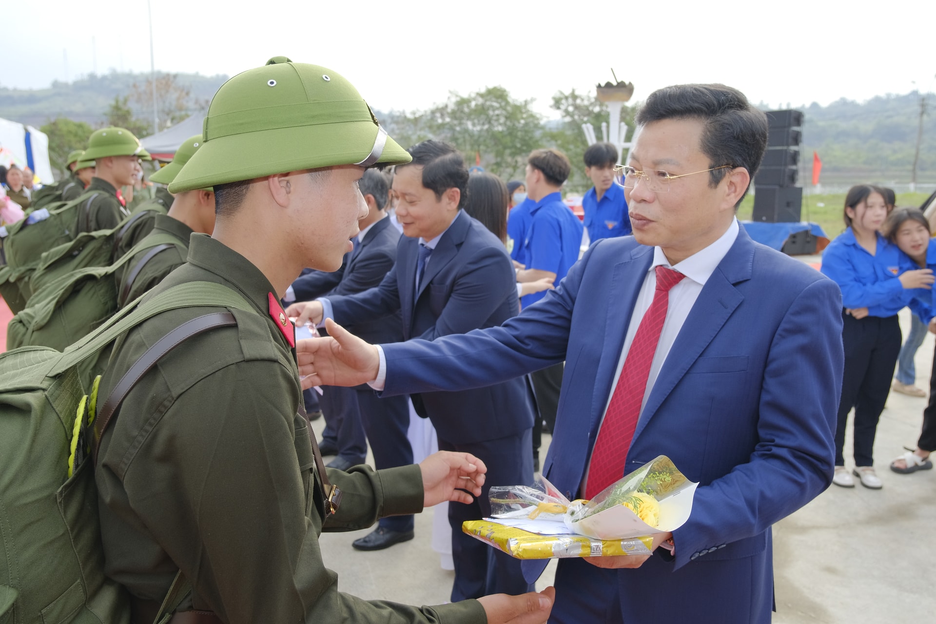 Lãnh đạo tỉnh trao tặng hoa cho thanh niên lên đường nhập ngũ
