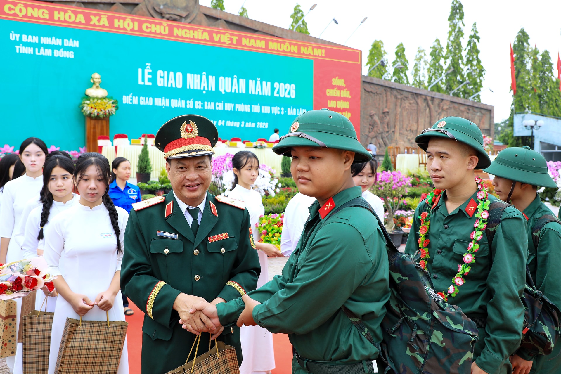 Lễ giao nhận quân năm 2026 tại Ban Chỉ huy Phòng thủKhu vực 3 - Bảo Lâm diễn ra trang trọng, đúng quy định, bảo đảm an toàn, thể hiện quyết tâm của Đảng bộ, chính quyền và Nhân dân tỉnh Lâm Đồng trong thực hiện nhiệm vụ xây dựng và bảo vệ Tổ quốc, góp phần tô thắm thêm truyền thống anh hùng của quê hương.