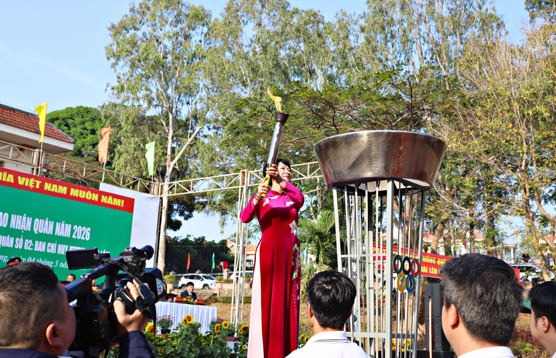 Tại buổi lễ, lãnh đạo tỉnh đã thực hiện nghi thức thắp lửa truyền thống và nổi hồi trống mở hội giao quân, tiếp thêm khí thế cho các thanh niên trước giờ lên đường.
