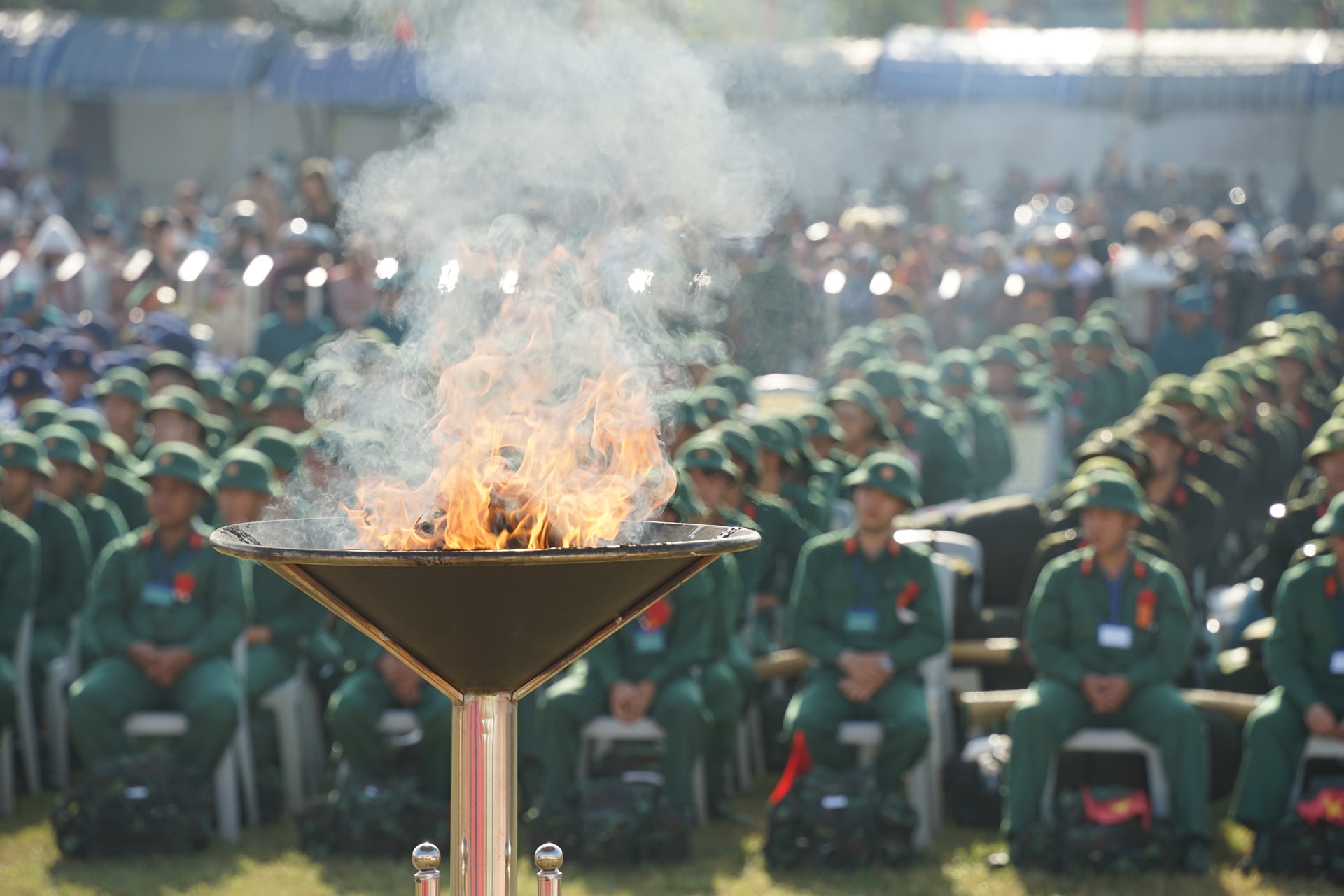 Trong không khí trang nghiêm, đồng chí Bùi Thắng, Phó Bí thư Tỉnh ủy đã thực hiện nghi thức thắp lửa truyền thống. Ngọn lửa được thắp sáng tượng trưng cho truyền thống cách mạng vẻ vang của quê hương, tiếp thêm niềm tin, ý chí và quyết tâm cho các tân binh trước giờ lên đường làm nhiệm vụ thiêng liêng bảo vệ Tổ quốc.