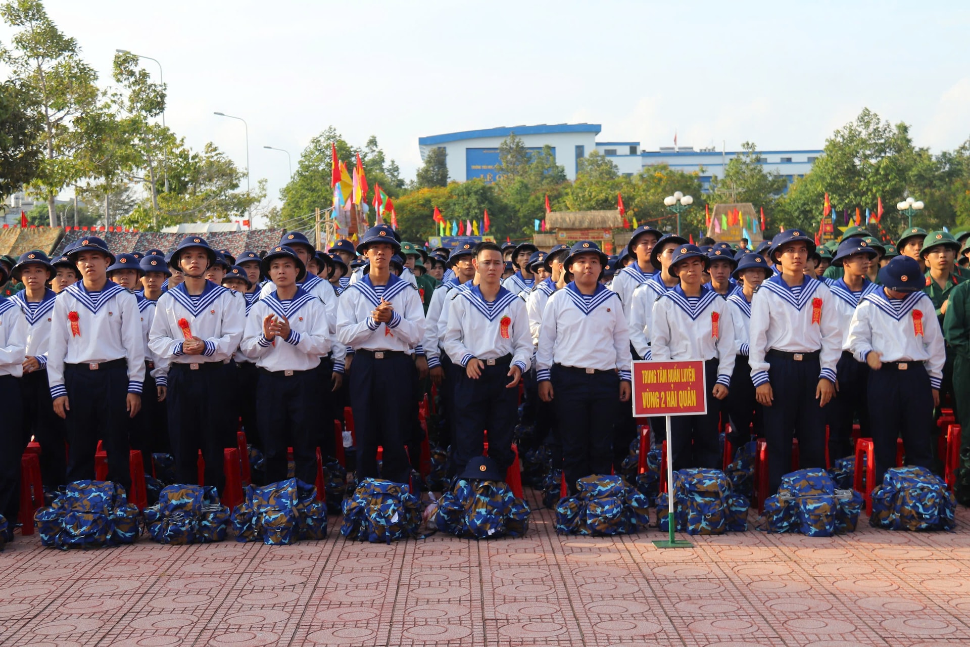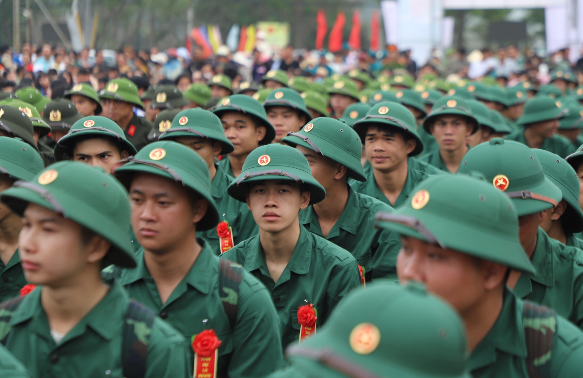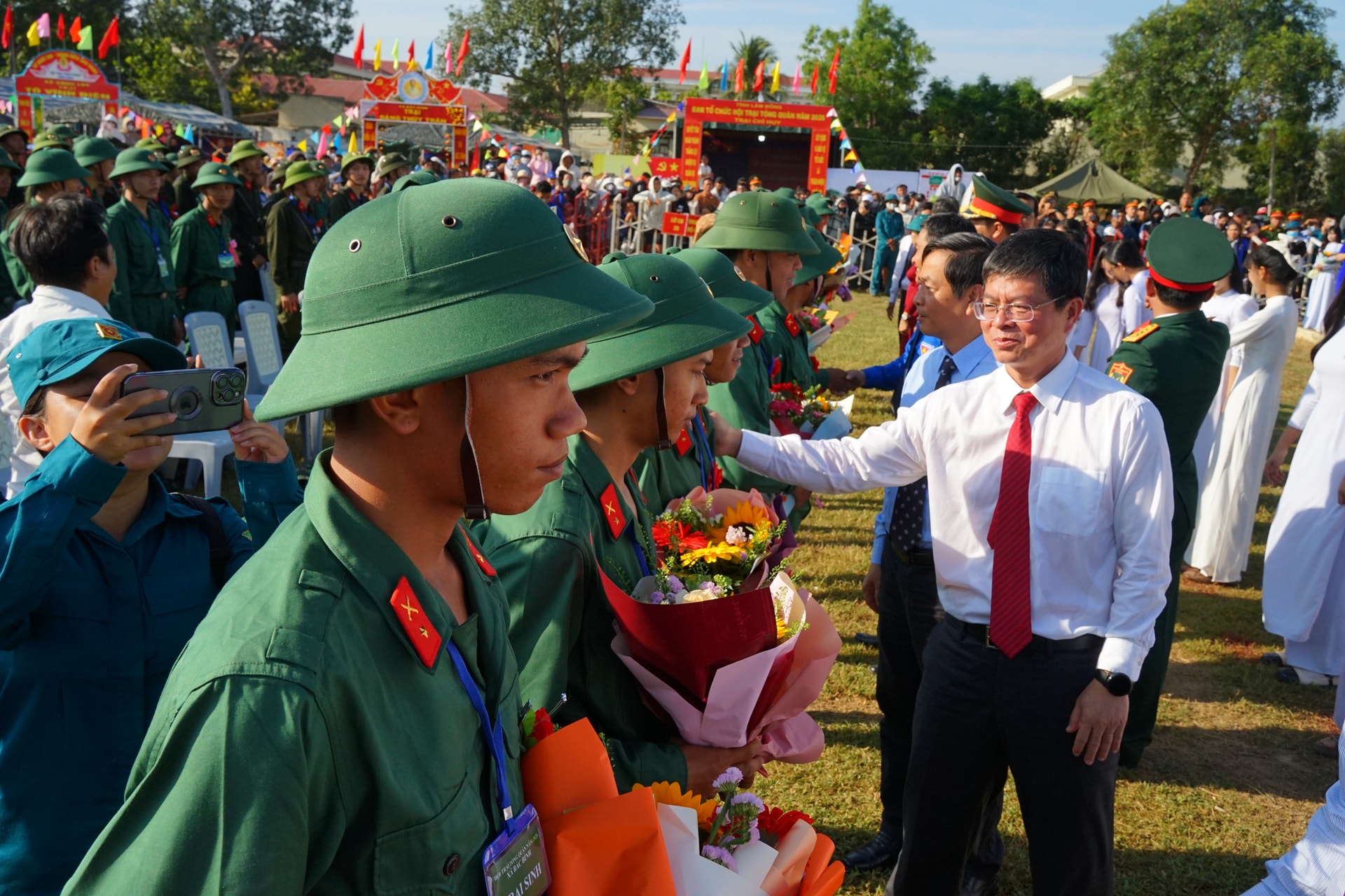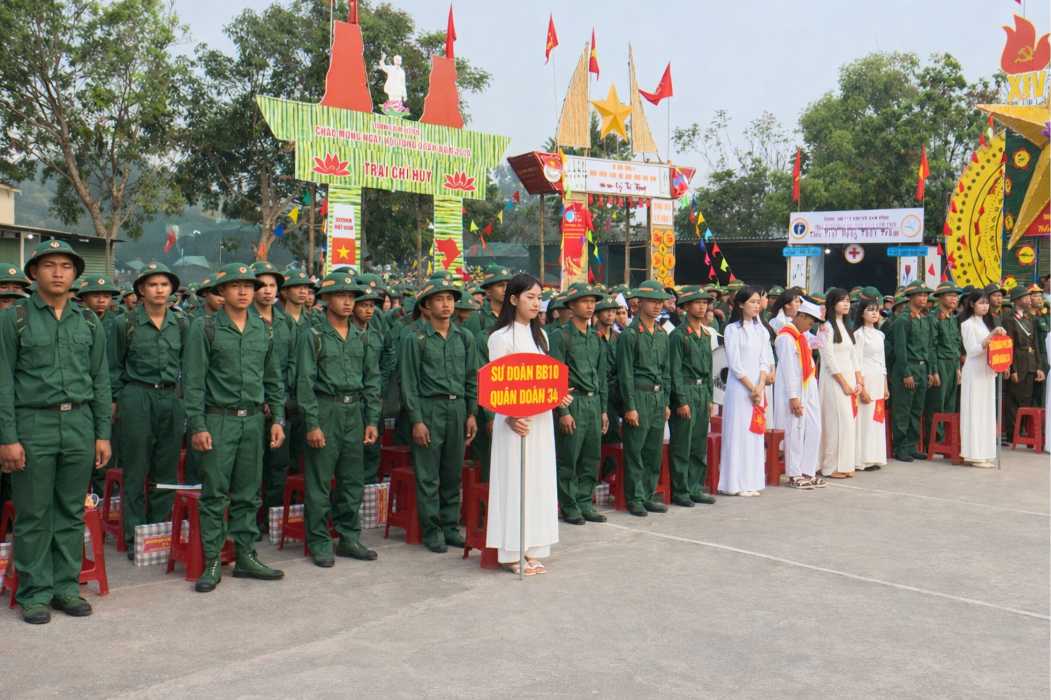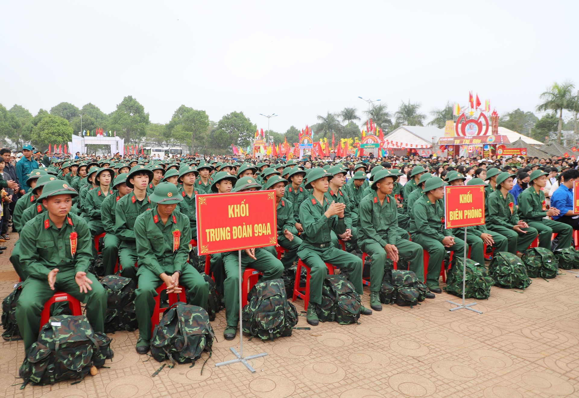 Thanh niên các địa phương trong quân phục chỉnh tề trong ngày hội tòng quân