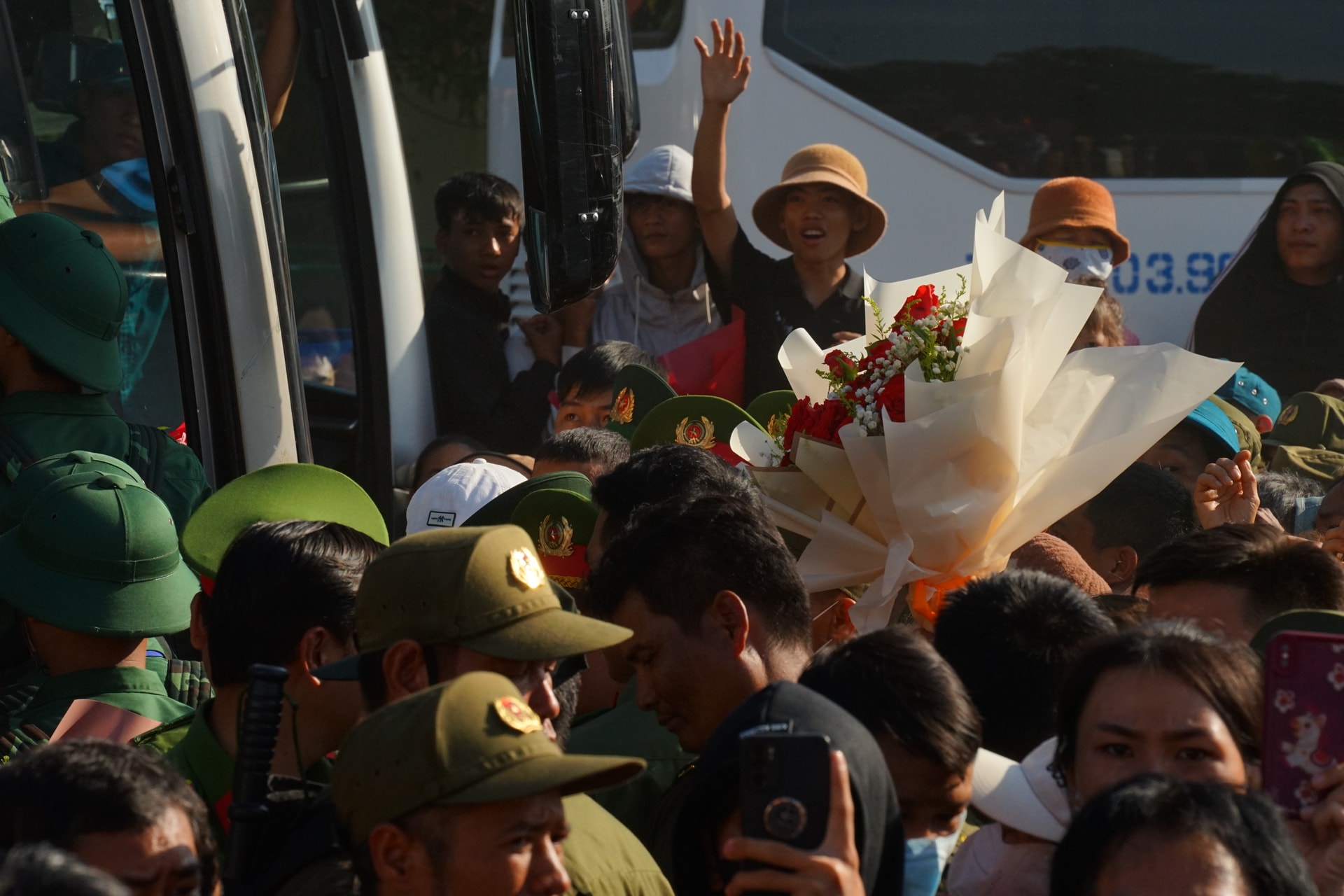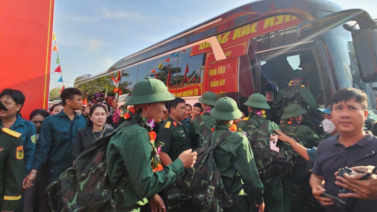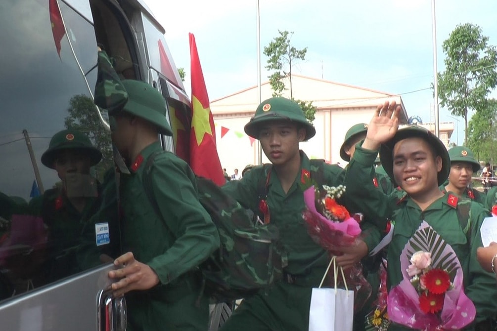 Chuyến xe đón tân binh lên đường nhập ngũ