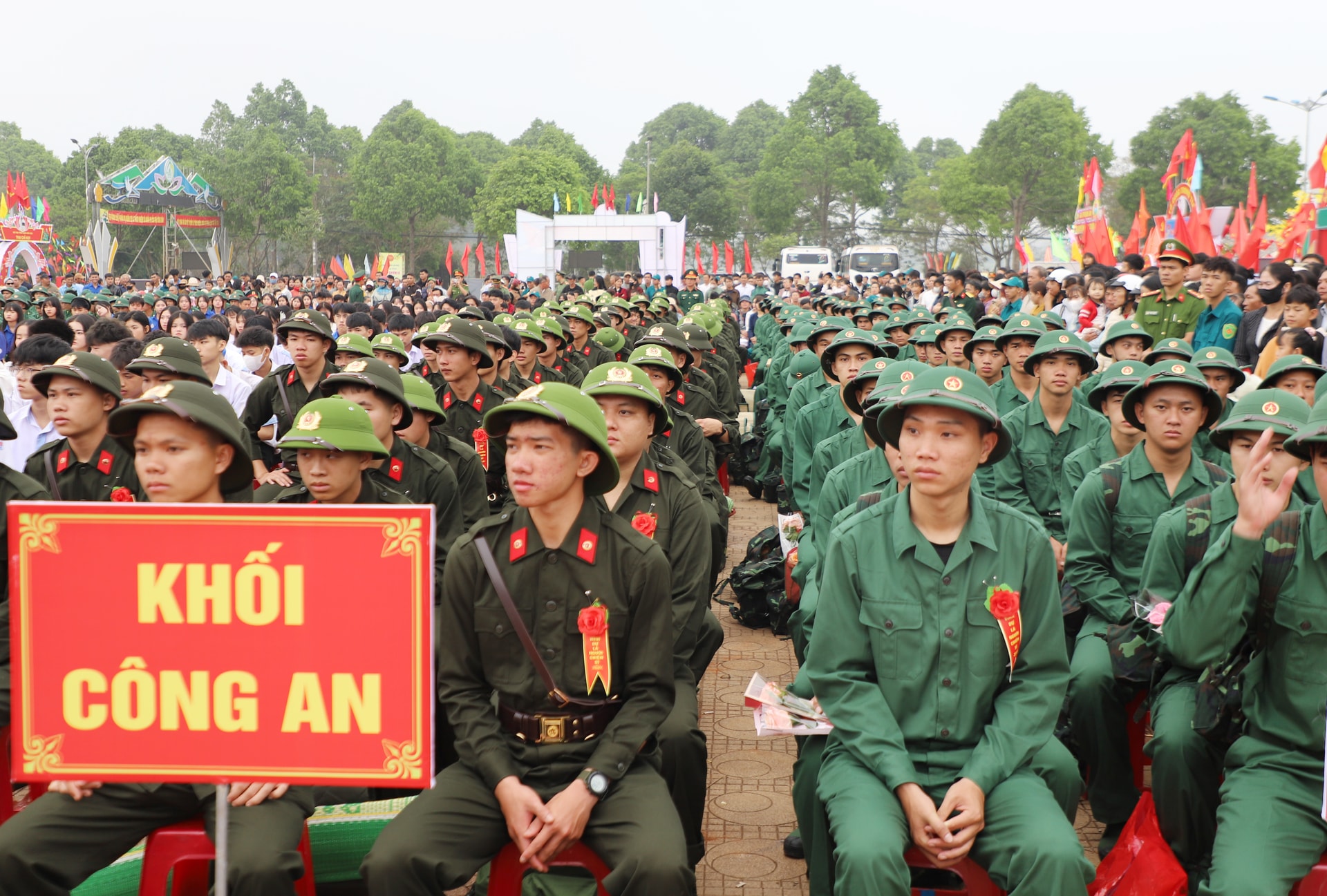 Khối tân binh tham gia thực hiện nghĩa vụ Công an