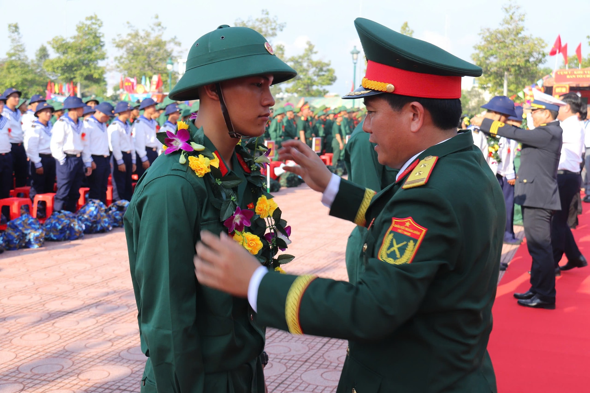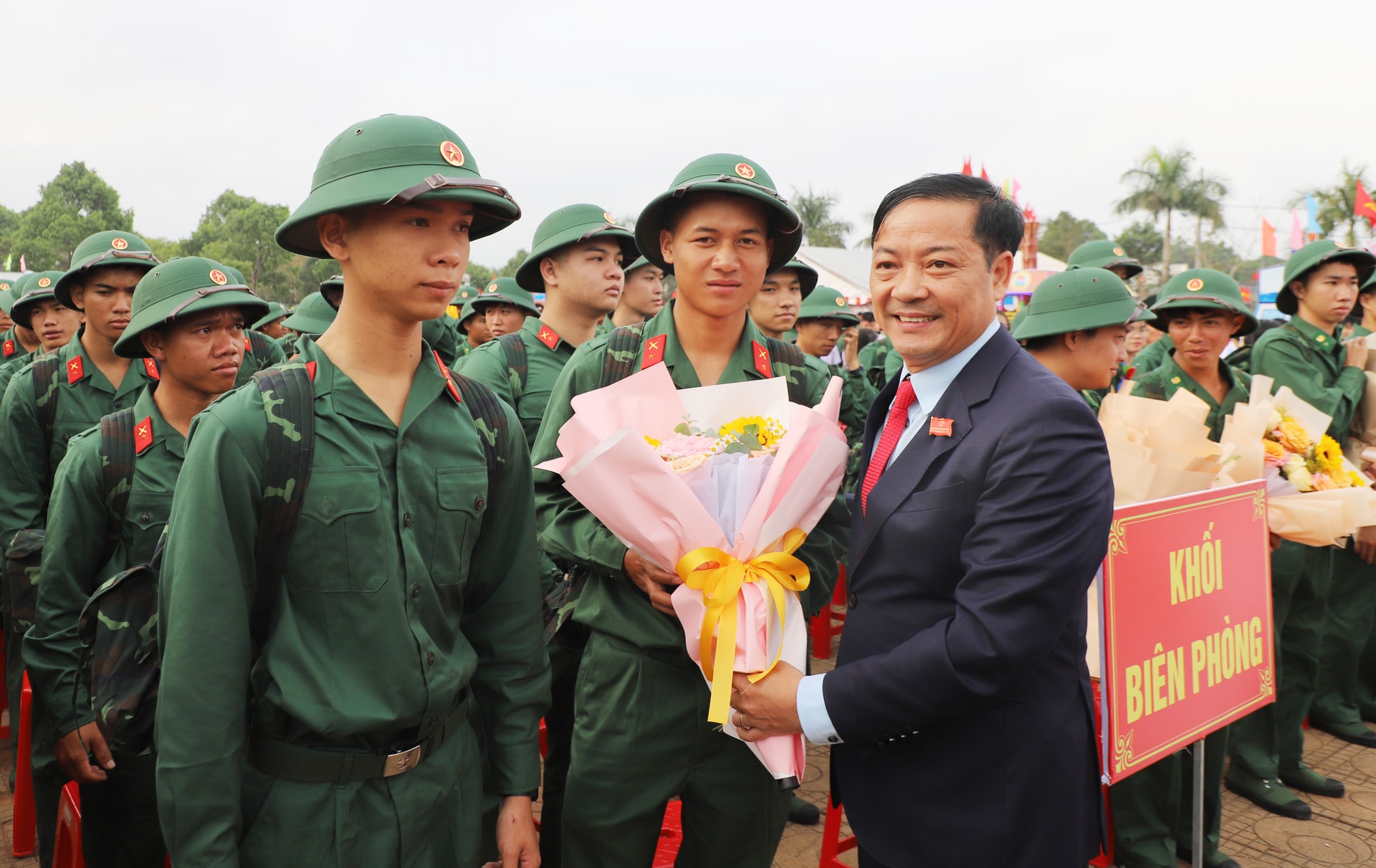 Tặng hoa động viên các tân binh