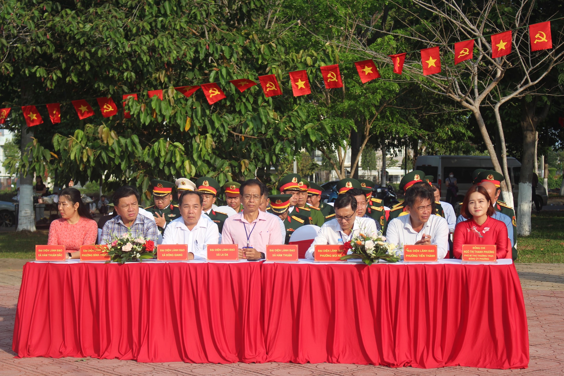 Đến dự có các đồng chí: Đặng Hồng Sỹ, Phó Bí thư Thường trực Tỉnh ủy Lâm Đồng; Hà Thị Hạnh, Ủy viên Ban Thường vụ Tỉnh ủy, Phó Chủ tịch Ủy ban MTTQ Việt Nam tỉnh; Đại tá Nguyễn Văn Sơn, Tỉnh ủy viên, Chính ủy Bộ CHQS tỉnh; lãnh đạo các sở, ban, ngành của tỉnh; đại diện 11 xã, phường thuộc Phòng thủ Khu vực 4 - La Gi cùng đông đảo Nhân dân trên địa bàn.