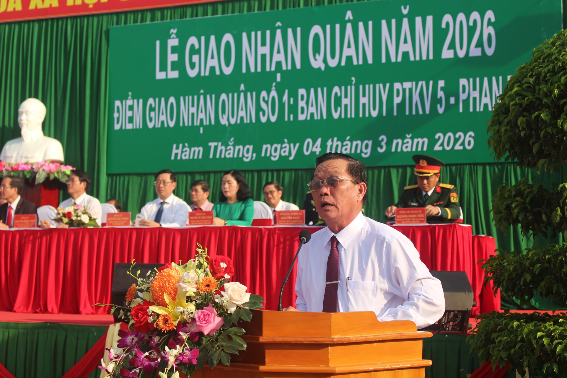 Phát biểu tại lễ giao nhận quân, Thượng tá Nguyễn Văn Dũng, Chỉ huy trưởng PTKV 5 - Phan Thiết, Thành viên Hội đồng Nghĩa vụ quân sự tỉnh, cho biết, tổng số thanh niên được giao quân tại 2 điểm là 868 công dân. Trong đó, 710 thanh niên thực hiện nghĩa vụ quân sự và 158 thanh niên thực hiện nghĩa vụ Công an Nhân dân.