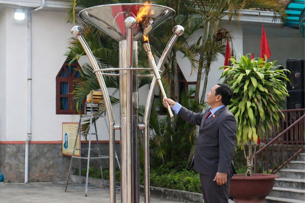 Đồng chí Lưu Văn Trung, Phó Bí thư Tỉnh ủy, Chủ tịch HĐND tỉnh Lâm Đồng thực hiện nghi thức thắp lửa truyền thống