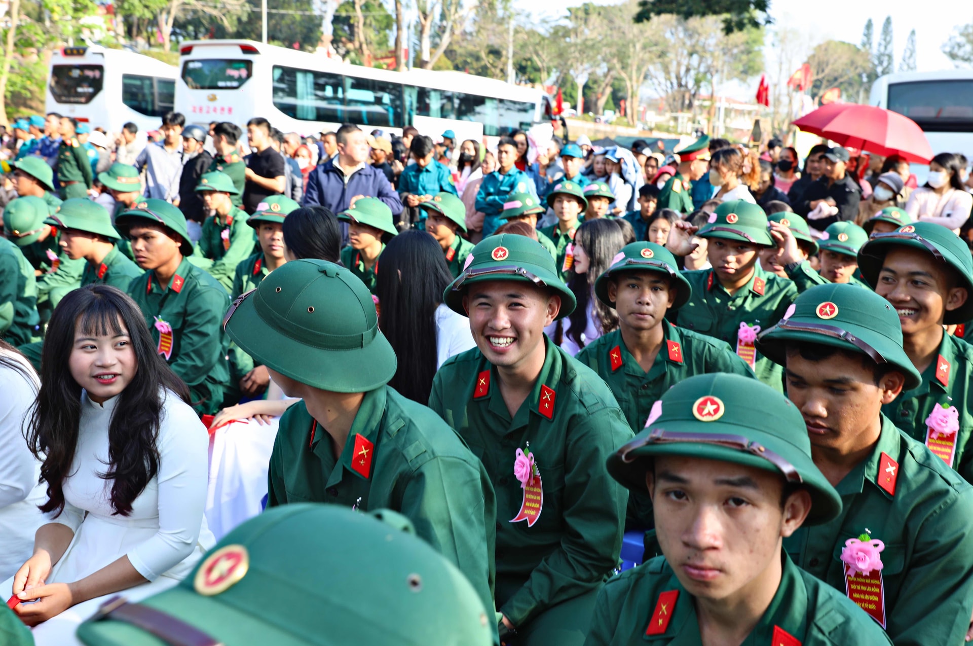 Lễ giao quân đã diễn ra trong không khí trang nghiêm và trọng thể, đông đảo người dân và gia đình các tân binh đến tiễn con em lên đường nhập ngũ.