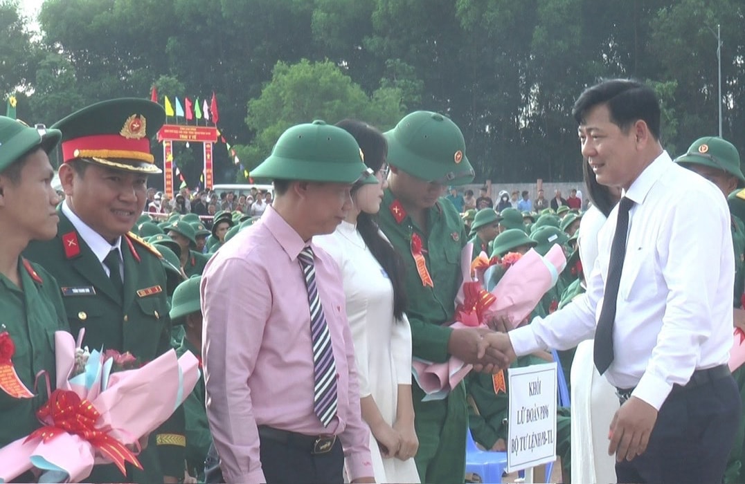 Tại buổi lễ, thay mặt Tỉnh ủy, HĐND, UBND, Ủy ban MTTQ Việt Nam tỉnh, đồng chí Lưu Văn Trung cùng các đại biểu đã trao hoa, quà chúc mừng, động viên tinh thần các chiến sĩ trẻ trước khi về đơn vị, mong muốn các tân binh phát huy truyền thống quê hương, nỗ lực rèn luyện, hoàn thành xuất sắc nhiệm vụ được giao.