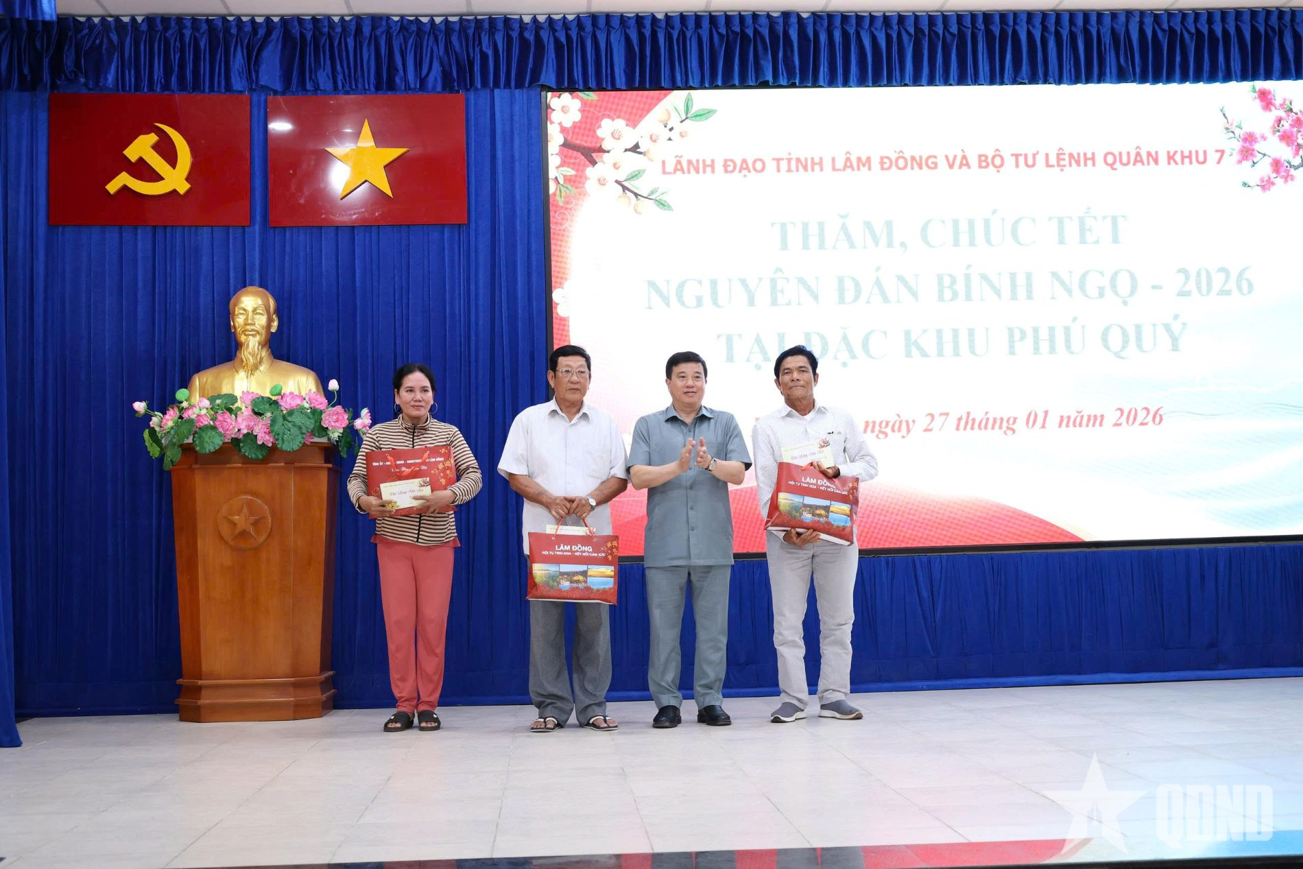 Nhân dịp chuẩn bị đón Tết Bính Ngọ 2026, đoàn công tác đã trao 67 phần quà Tết tới cấp ủy, chính quyền đặc khu Phú Quý; các lực lượng đang làm nhiệm vụ trên địa bàn; các đơn vị Quân đội, công an, biên phòng, kiểm ngư cùng các gia đình người có công, hộ nghèo, hộ cận nghèo và các trường hợp có hoàn cảnh khó khăn.