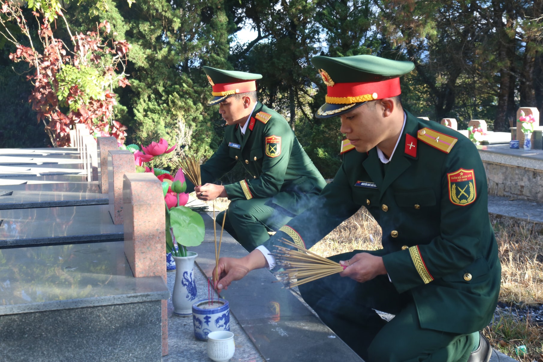 Sau nghi thức dâng hương, các đồng chí lãnh đạo tỉnh cùng đại biểu đã thắp hương tại từng phần mộ liệt sĩ, thể hiện đạo lý “Uống nước nhớ nguồn”, “Đền ơn đáp nghĩa” - truyền thống tốt đẹp của dân tộc Việt Nam, nhất là trong dịp Tết cổ truyền.