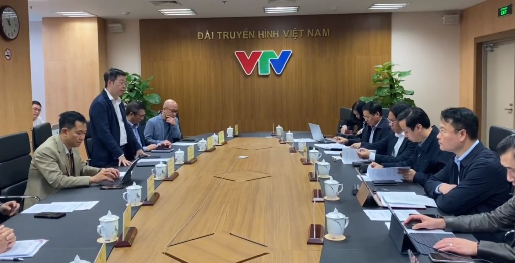 Tiếp và làm việc với đoàn, có các đồng chí: Nguyễn Thanh Lâm, Tổng Giám đốc Đài Truyền hình Việt Nam; Đỗ Thanh Hải, Phó Tổng Giám đốc Thường trực Đài Truyền hình Việt Nam; lãnh đạo các ban, đơn vị chuyên môn của VTV.