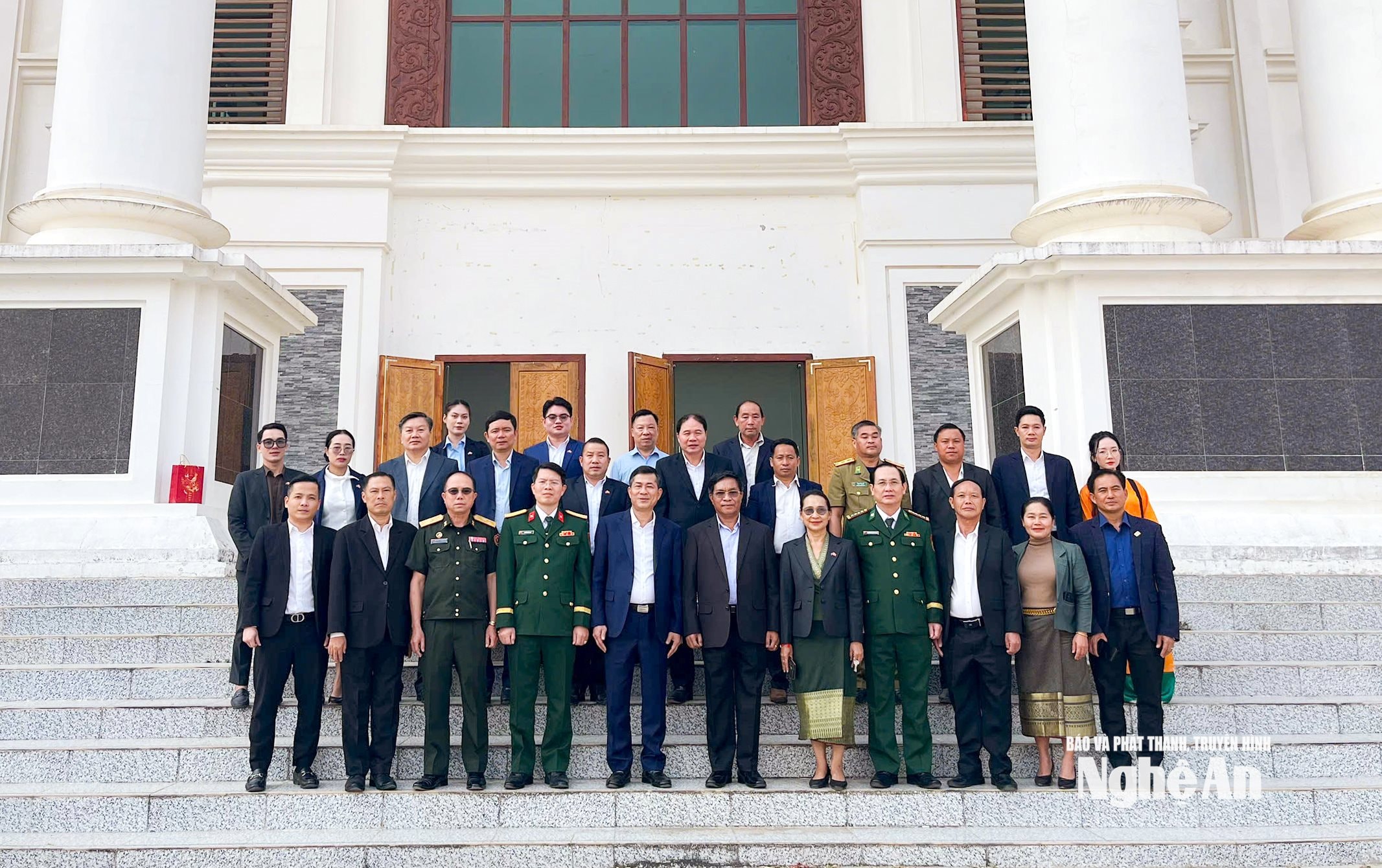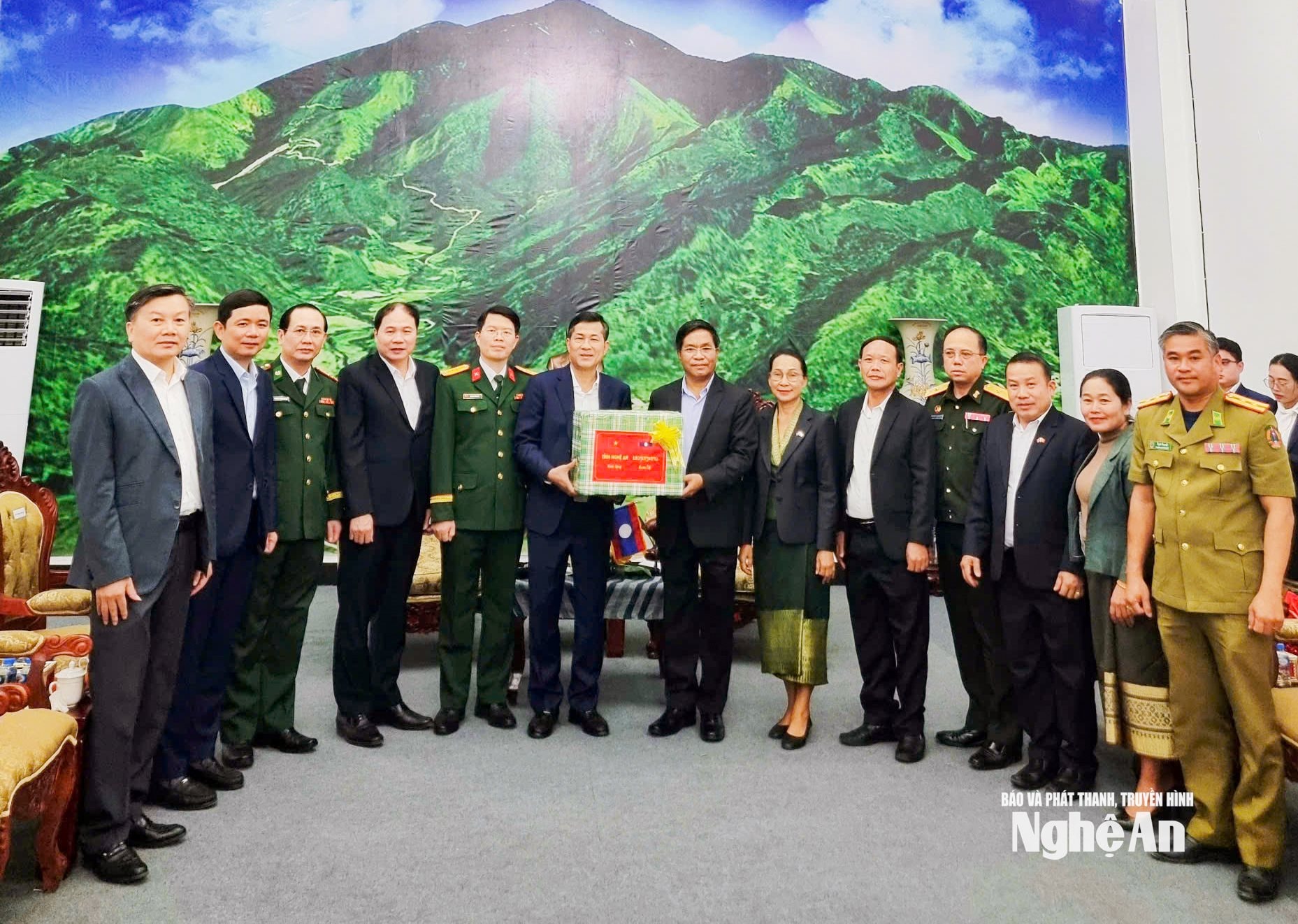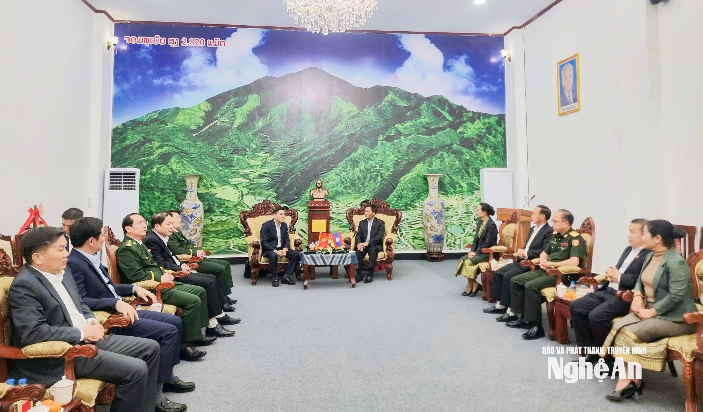 Đón tiếp đoàn có đồng chí Thiếu tướng Bua Phăn-In Tha Păn Nha - Phó Bí thư Tỉnh ủy, Chủ tịch Ủy ban Chính quyền tỉnh Xay Sổm Bun cùng lãnh đạo các sở, ban, ngành của tỉnh.