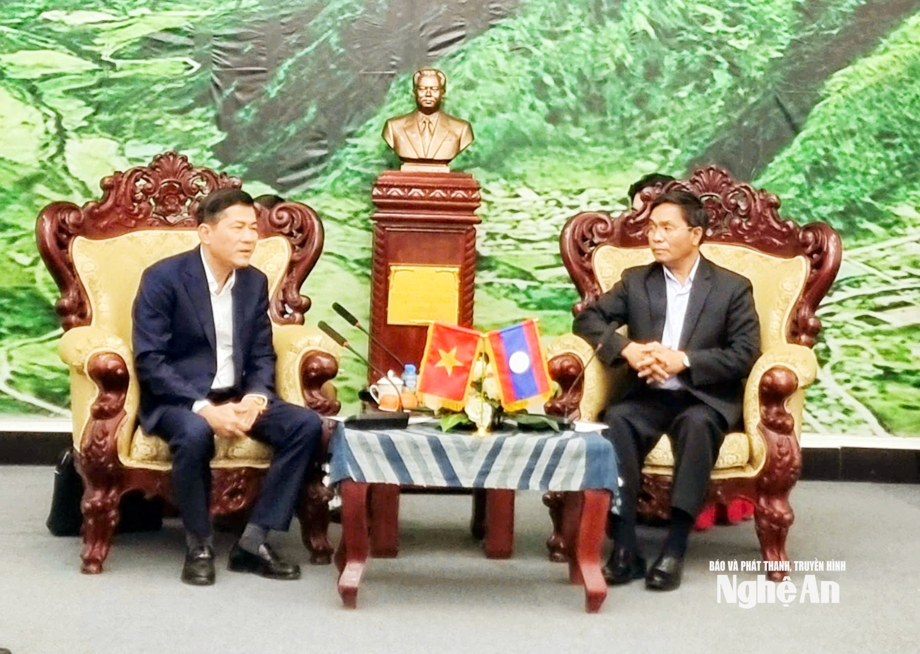 Đồng chí Thái Văn Thành - Ủy viên Ban Chấp hành Đảng bộ tỉnh, Phó Chủ tịch UBND tỉnh gửi lời chúc mừng năm mới tới tỉnh Xay Sổm Bun. Ảnh: Vân Anh