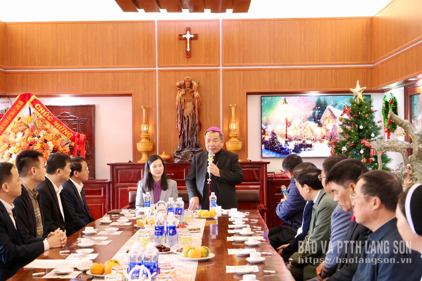 Đoàn công tác của tỉnh tặng quà chúc mừng Tòa Giám mục Giáo phận Lạng Sơn - Cao Bằng nhân dịp Lễ Giáng sinh 2025