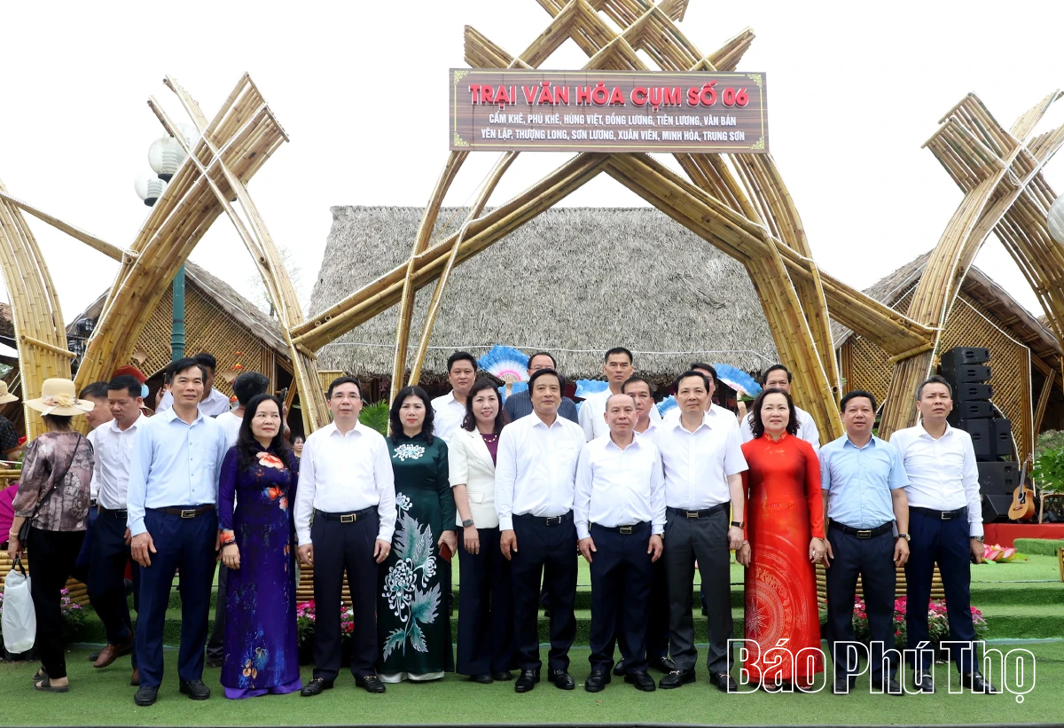 Các đồng chí lãnh đạo tỉnh chụp ảnh lưu niệm tại các trại văn hóa.