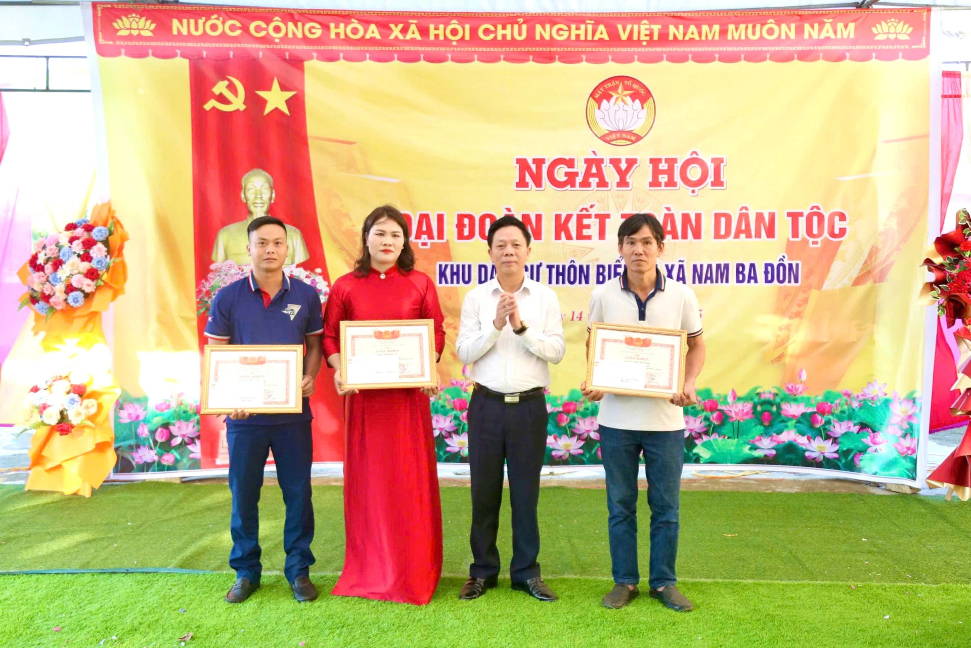 Dịp này, đồng chí Nguyễn Trần Huy, Phó Chủ tịch HĐND tỉnh đã trao quà của Tỉnh ủy, HĐND, UBND, Ủy ban MTTQ Việt Nam tỉnh cho khu dân cư Biểu Lệ; trao 30 suất quà của Ủy ban MTTQ Việt Nam tỉnh cho các gia đình hoàn cảnh khó khăn. Lãnh đạo xã Nam Ba Đồn biểu dương, khen thưởng 1 tập thể và 2 cá nhân có nhiều thành tích trong thực hiện các cuộc vận động, phong trào thi đua năm 2025.