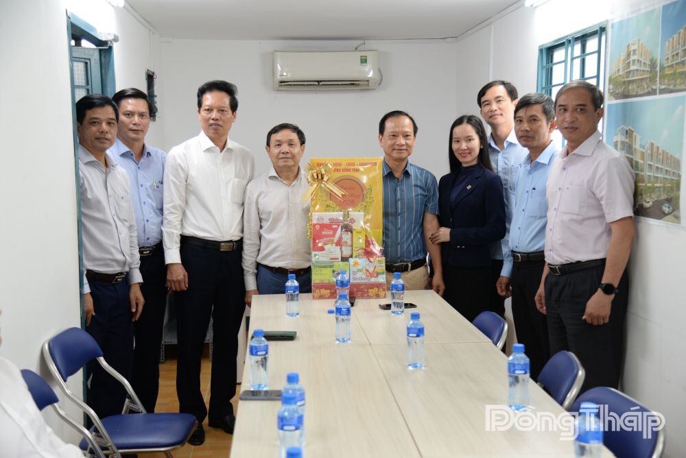 Đoàn công tác nghe báo cáo tiến độ dự án.