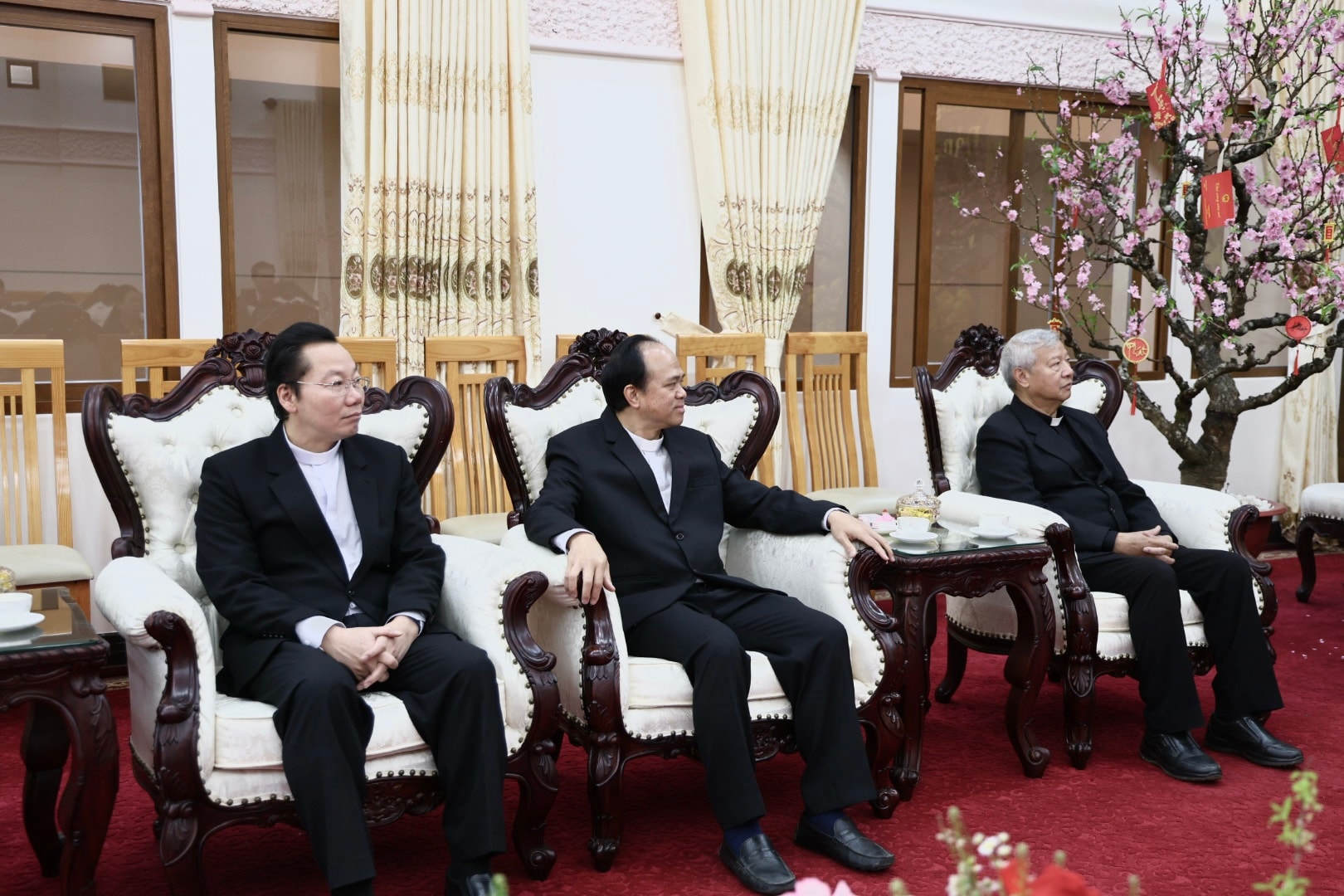 Đoàn Tòa Giám mục Giáo phận Đà Lạt do Giám mục Đaminh Nguyễn Văn Mạnh, Chủ tịch Ủy ban Mục vụ Gia đình Hội đồng Giám mục Việt Nam, Giám mục Giáo phận Đà Lạt làm trưởng đoàn đến thăm, chúc mừng năm mới.