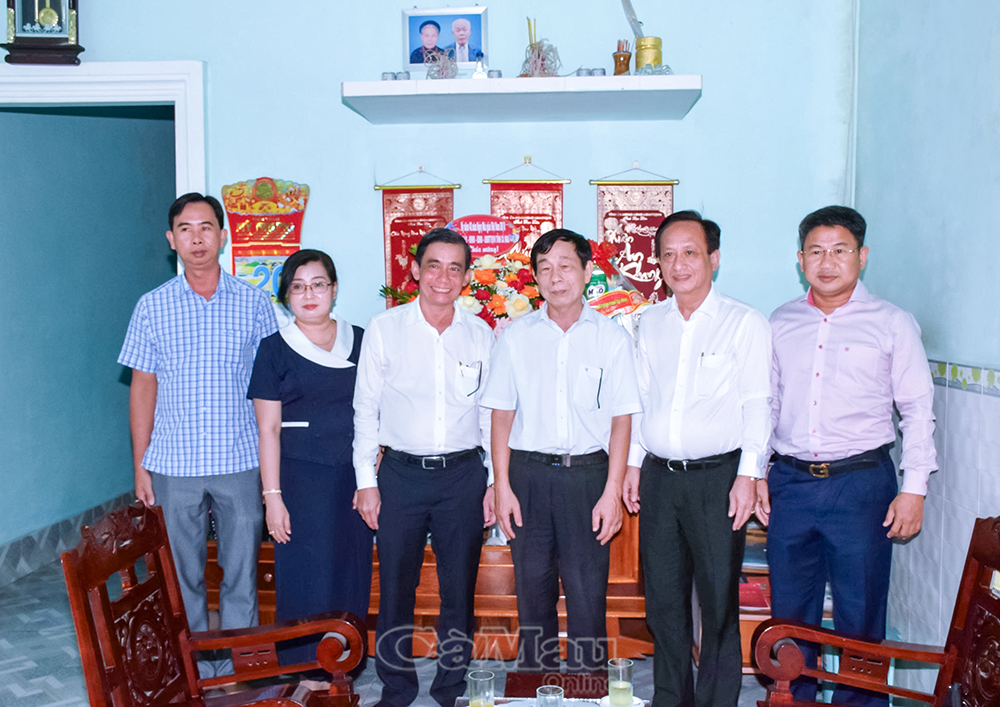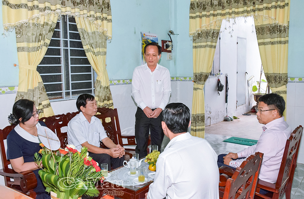 Đoàn công tác của Tỉnh ủy - HĐND - UBND - Ủy ban MTTQ Việt Nam tỉnh Cà Mau tặng hoa, quà và chúc mừng gia đình NGƯT Lý Văn Phú và Lê Thị Mỹ Huê.