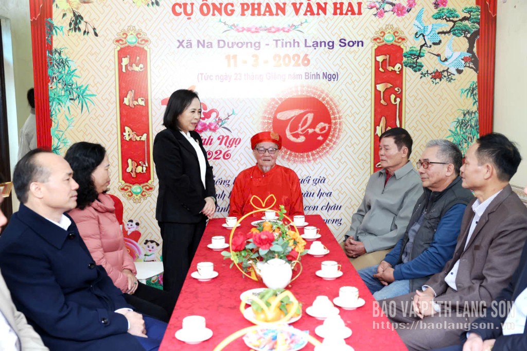 Trong chương trình, đoàn đã đến thăm, tặng quà, chúc thọ cụ Hoàng Thị Tầm (mẹ liệt sĩ), thôn Kim Quán, xã Đình Lập và cụ Phan Văn Hải (thương binh) thôn Na Dương, xã Na Dương. Tại mỗi gia đình, đồng chí Phó Bí thư Thường trực Tỉnh ủy đã trân trọng trao thiệp mừng thọ 100 tuổi, 5m vải lụa đỏ và quà tặng của Chủ tịch nước, của tỉnh đến các cụ.