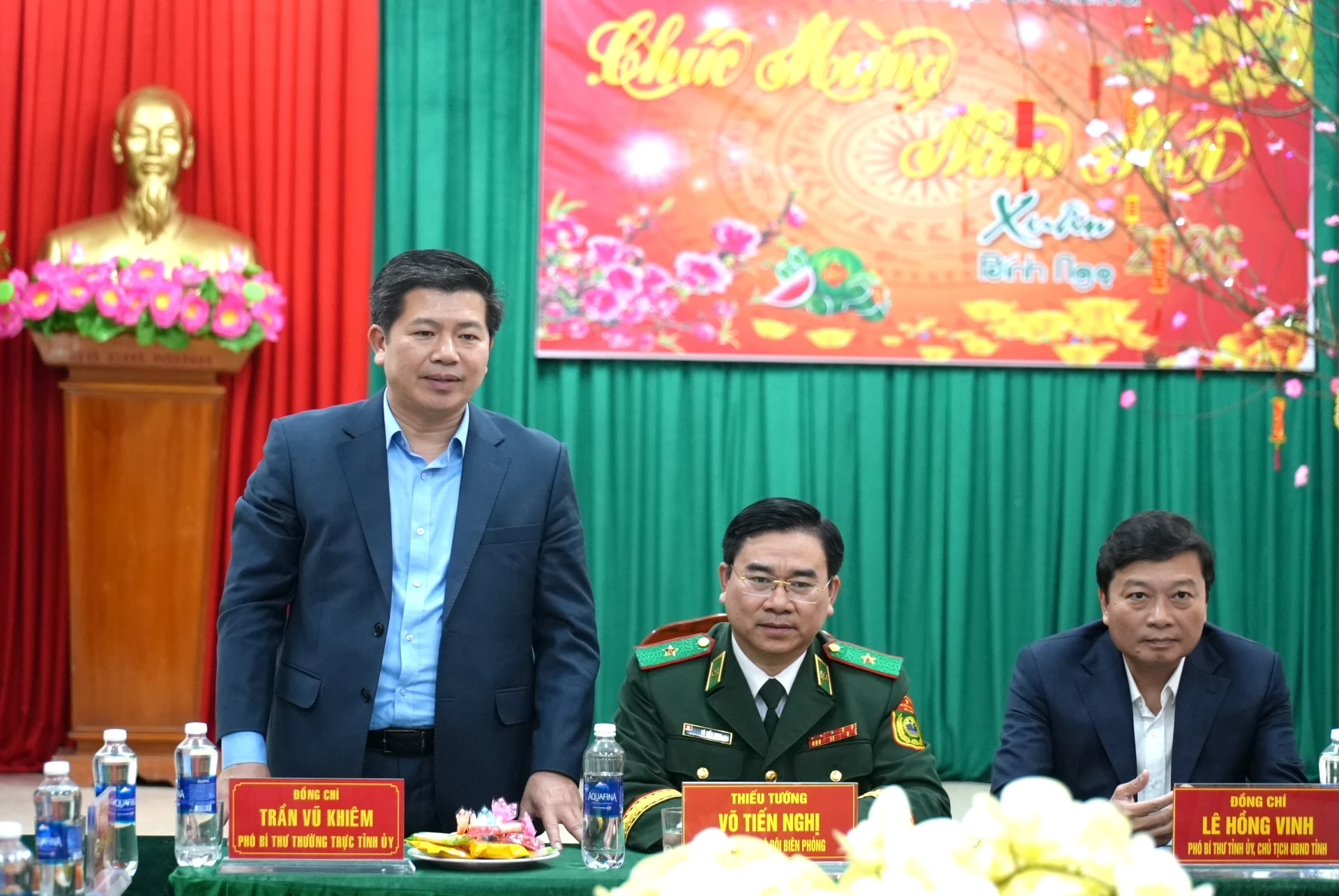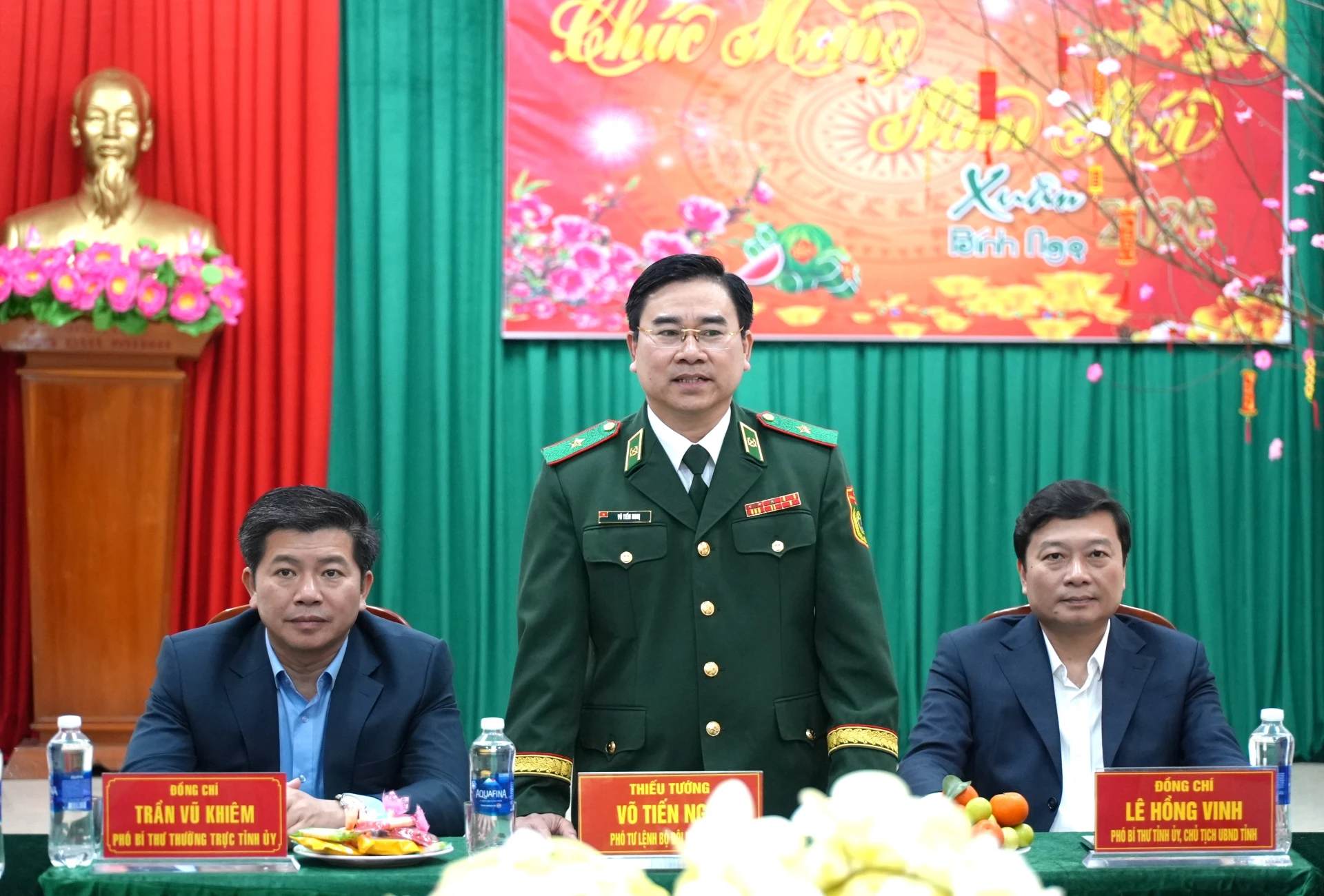 Đồng chí Trần Vũ Khiêm, Phó Bí thư Thường trực Tỉnh ủy lưu ý một số nhiệm vụ mà Đồn Biên phòng Cà Xèng cần chú trọng thực hiện trong dịp Tết - Ảnh: T.Đ