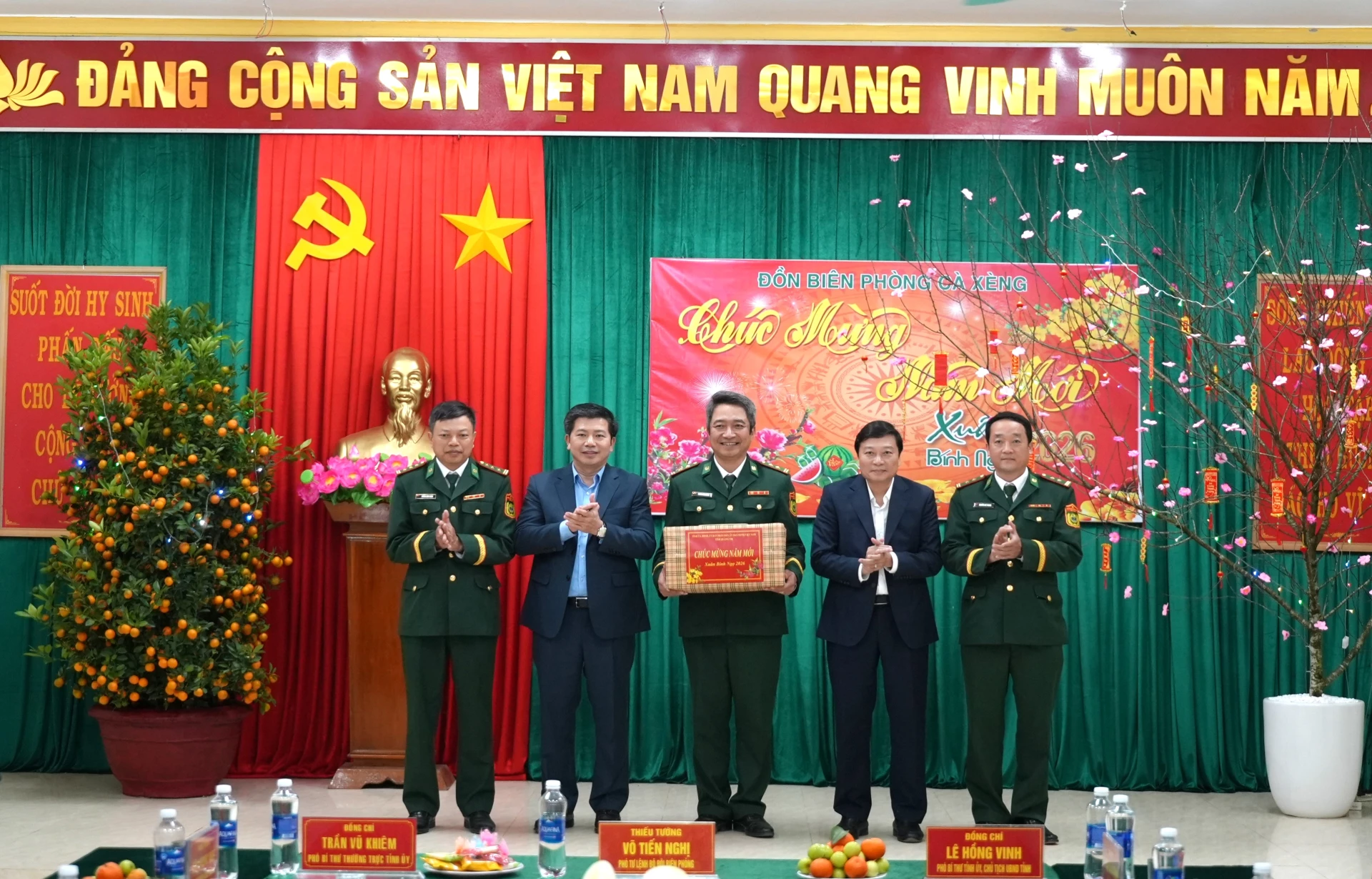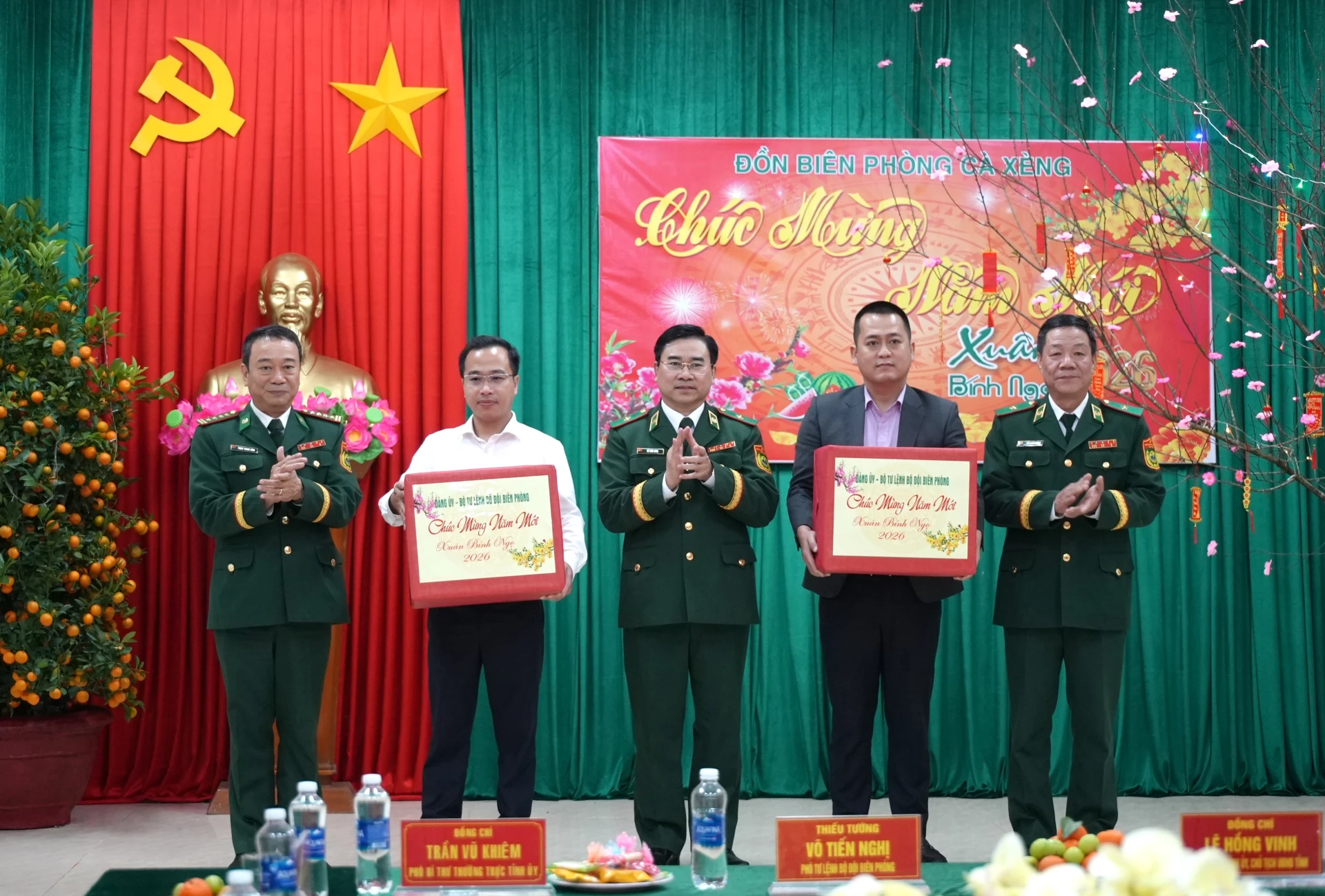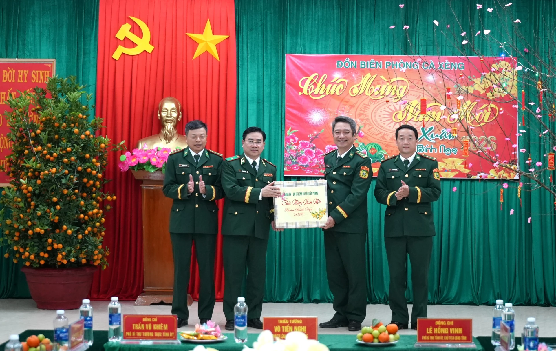 Nhân dịp Tết Nguyên đán sắp tới, các đồng chí lãnh đạo tỉnh, lãnh đạo Bộ Tư lệnh BĐBP đã trao tặng các phần quà ý nghĩa và gửi lời chúc mừng năm mới tốt đẹp nhất đến cán bộ, chiến sĩ Đồn Biên phòng Cà Xèng.